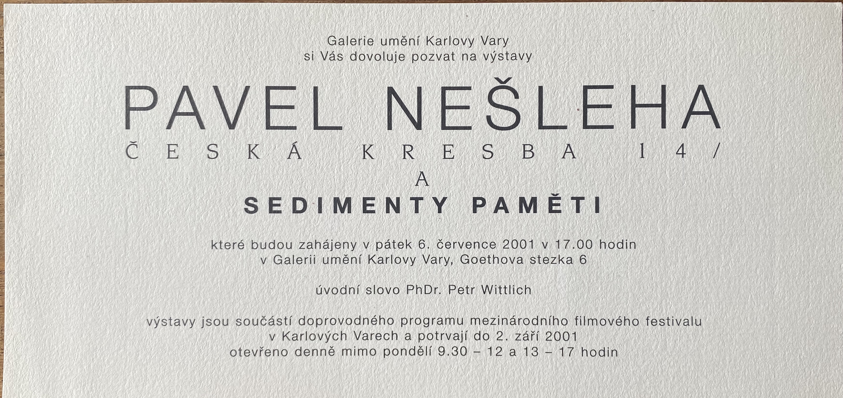 Pavel Nešleha. Ceská Kresba 14 / A Sedimenty Paměti, Galerie uměni Karlovy Vary, Goethova, 6. července – 2. září 2001