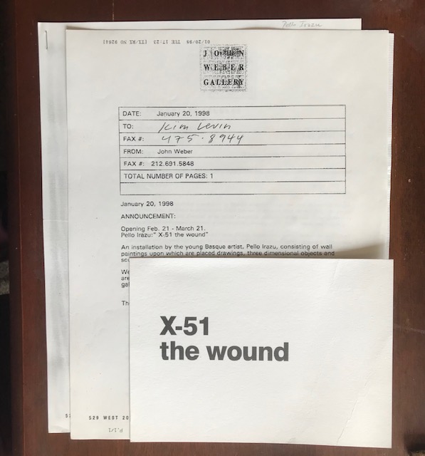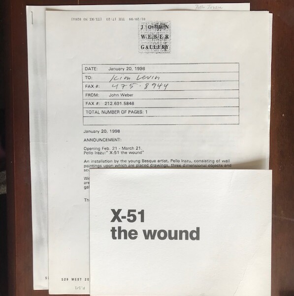 Pello Irazu. X51 the wound. John Weber Gallery, New York, February 21-March 21, 1998
