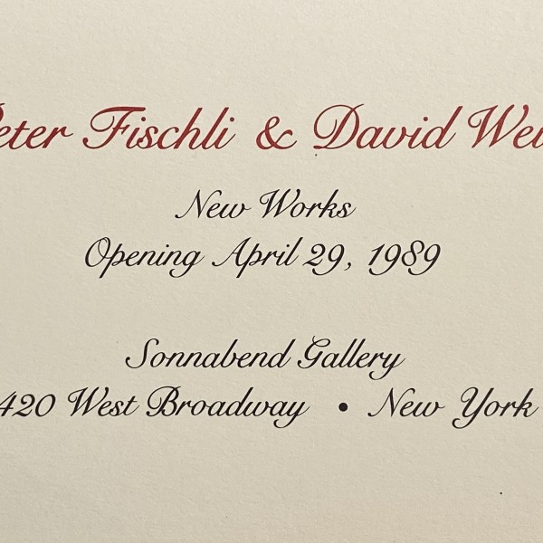 Peter Fischli and David Weiss. New Works Sonnabend Gallery, New York. Opening April 29, 1989
