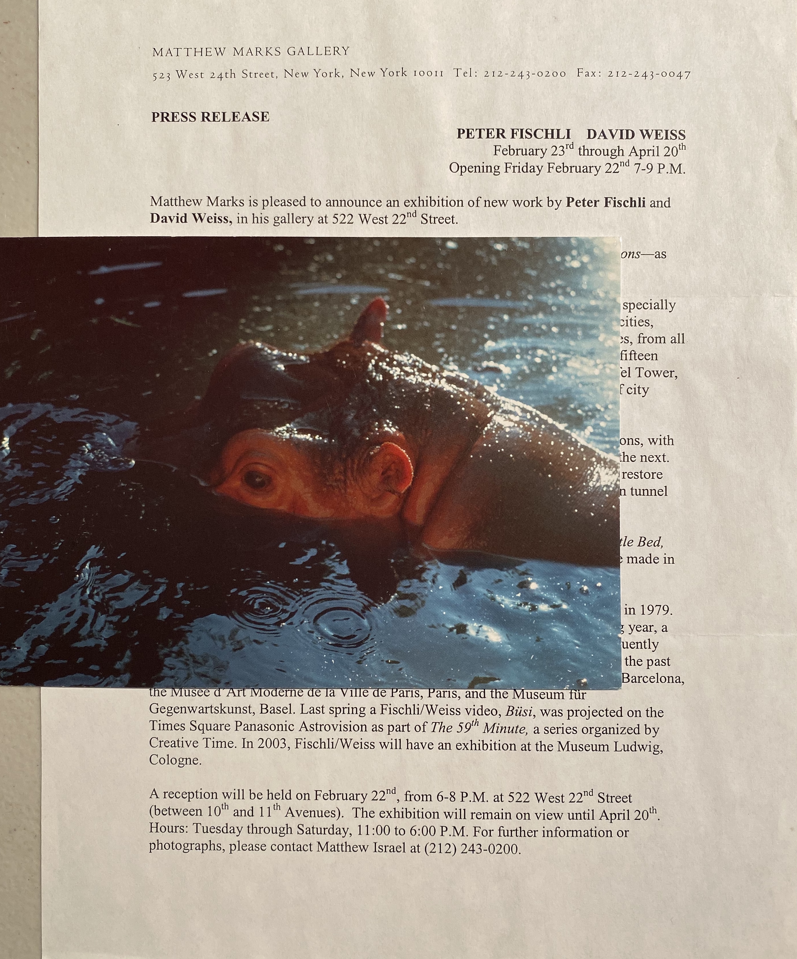 (Peter Fischli David Weiss). Peter Fischli David Weiss. Matthew Marks Gallery, New York, February 22 – April 20, 2002