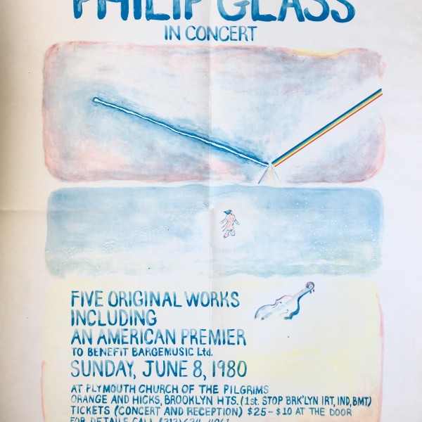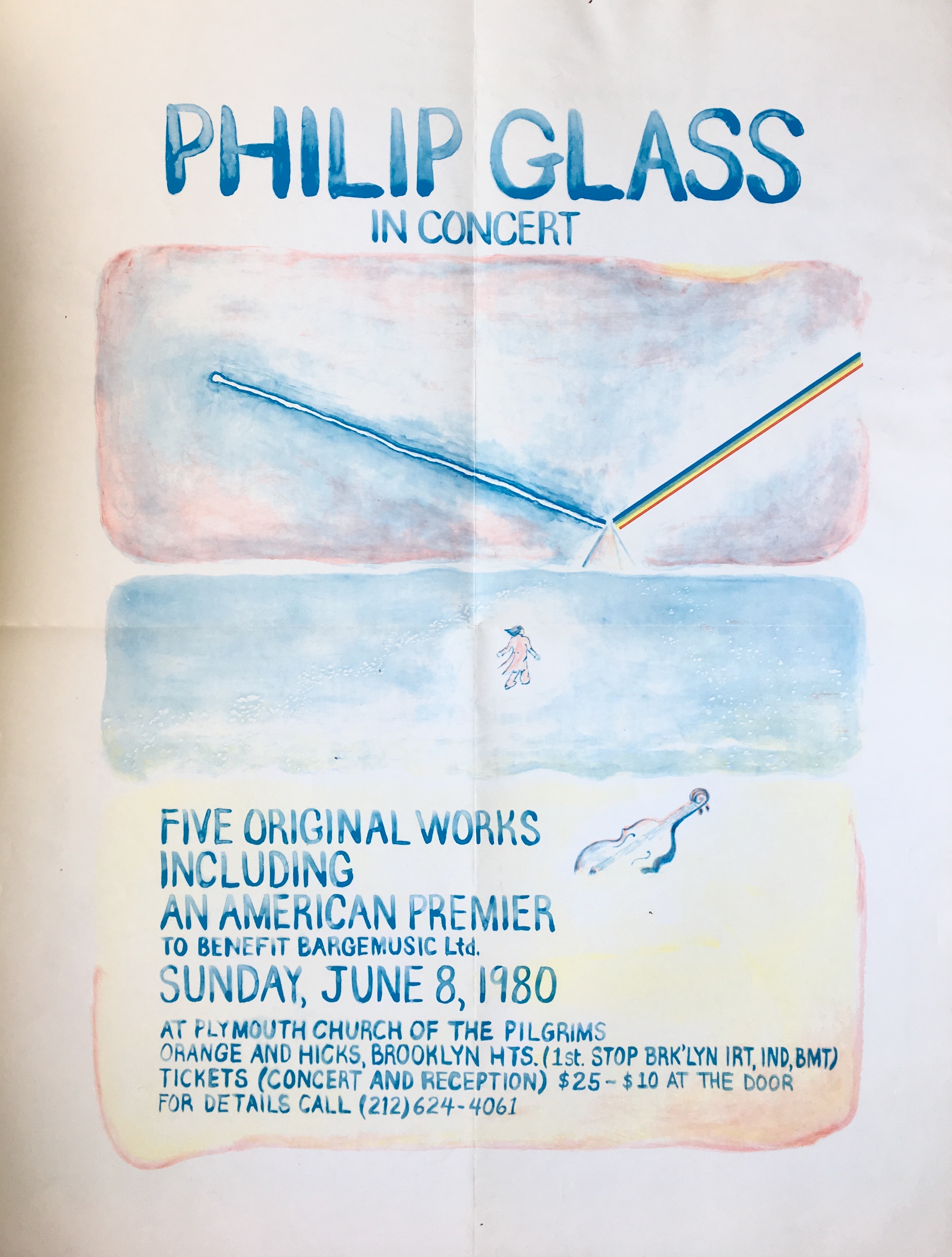(Philip Glass). Philip Glass in concert. Five original works including an American premier to benefit Bargemusic Ltd. Plymouth Church of the Pilgrims, Brooklyn, June 8, 1980