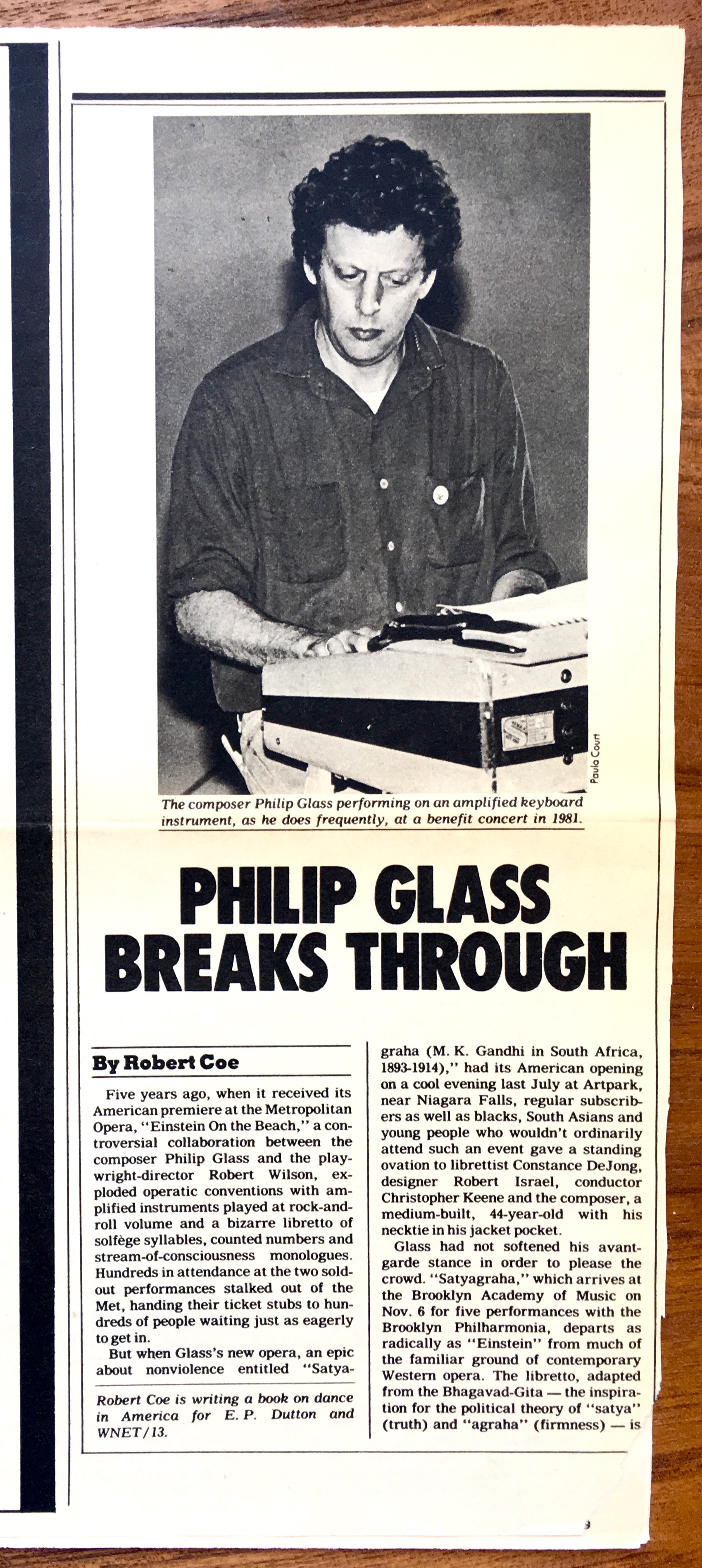 (Philip Glass). Robert Coe. Philip Glass breaks through. The New York Times Magazine, October 25, 1981