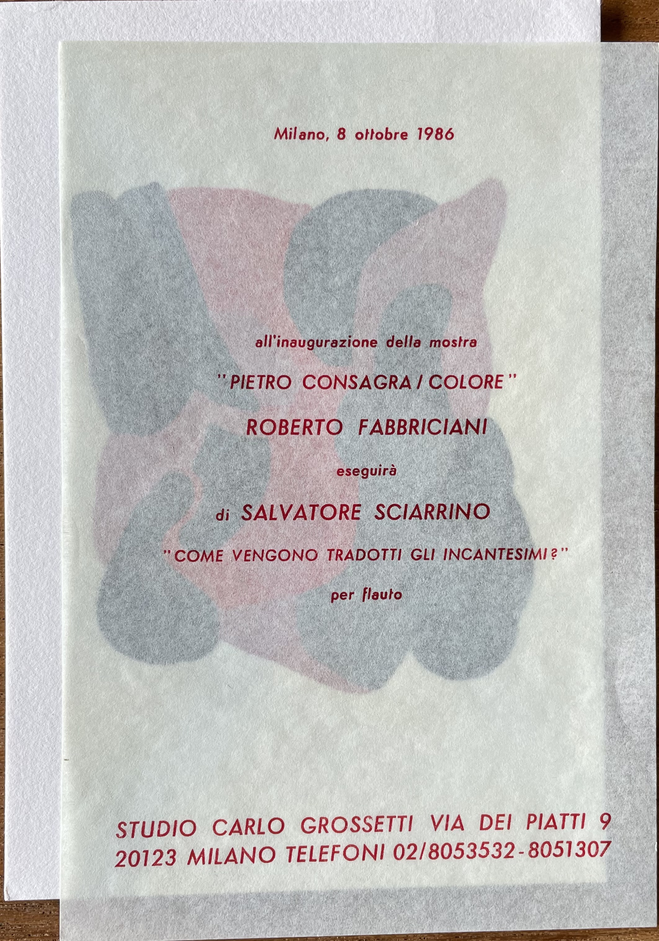 Pietro Consagra. “Consagra colore”. Studio Carlo Grossätti, Milano, 8 October 1986