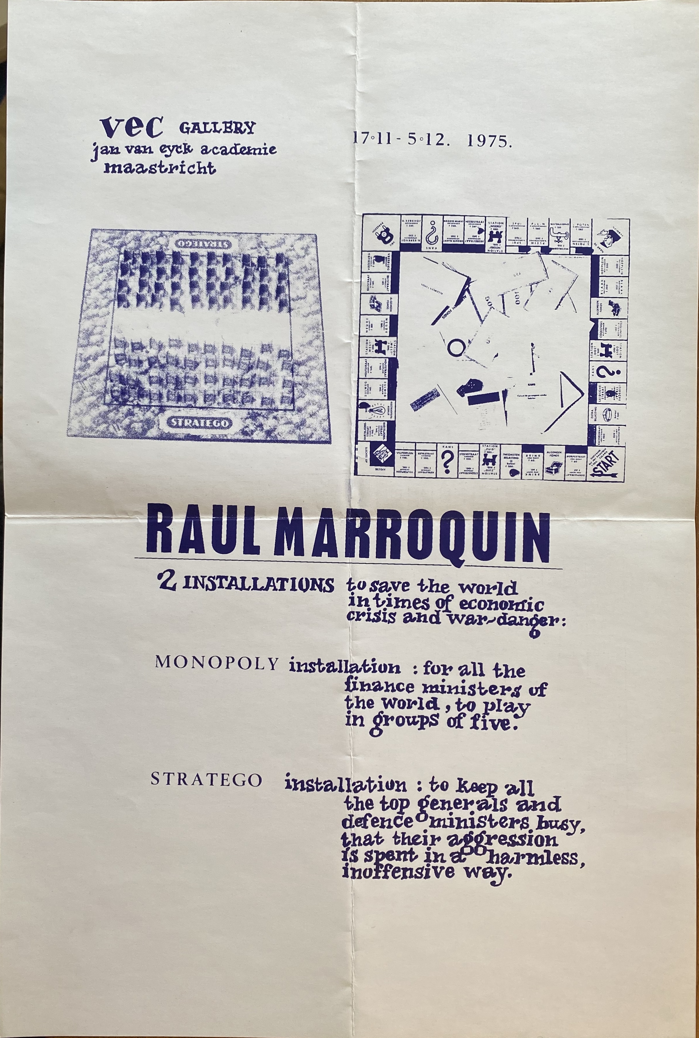 Raul Marroquin. 2 installations. VEC Gallery, Jan van Eyck Academy, Maastricht, 17.11.-5.12.1975