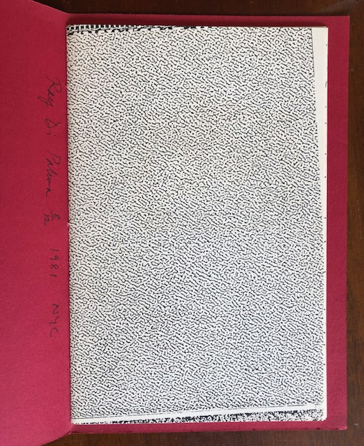 Signed, numbered “8/12” and dated inside front panel of rasberry folder