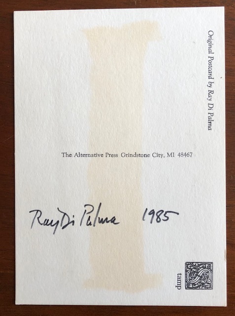 Ray Di Palma. Untitled collage, 1985, on printed postcard, Grindstone City, Michigan, no date. (‘Original Postcard by Ray Di Palma’)