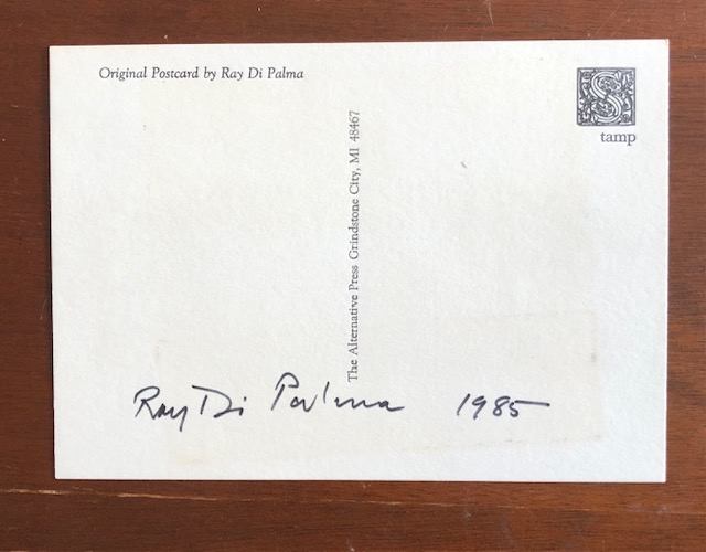 Ray Di Palma. Untitled collage on printed postcard. Grindstone City, Michigan, no date. (‘Original Postcard by Ray Di Palma’)