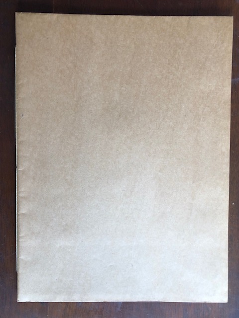 [17] pages. 11-3/8 x 8-1/2″ / 29 x 21.5 cm, stitched to 12 x 9″ / 30.5 x 22.5 cm blank brown paper covers.