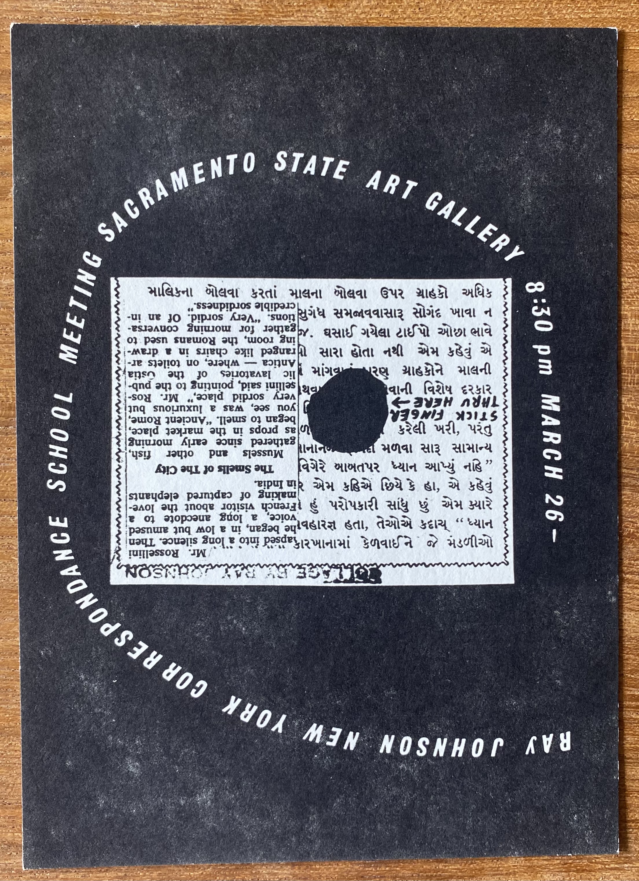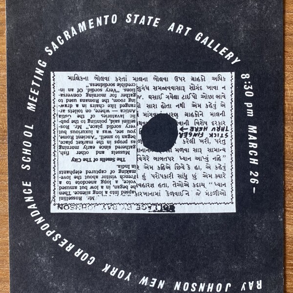 Ray Johnson. New York Correspondence School Meeting. Sacramento State Art Gallery, March 26, [1969].