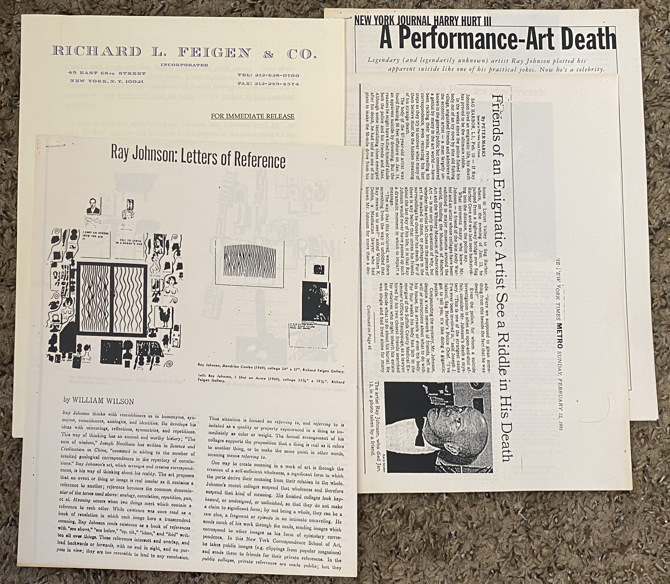(Ray Johnson). Ray Johnson: A Memorial Exhibition. Richard L. Feigen & Co., New York, April 27 – June 16, 1995.