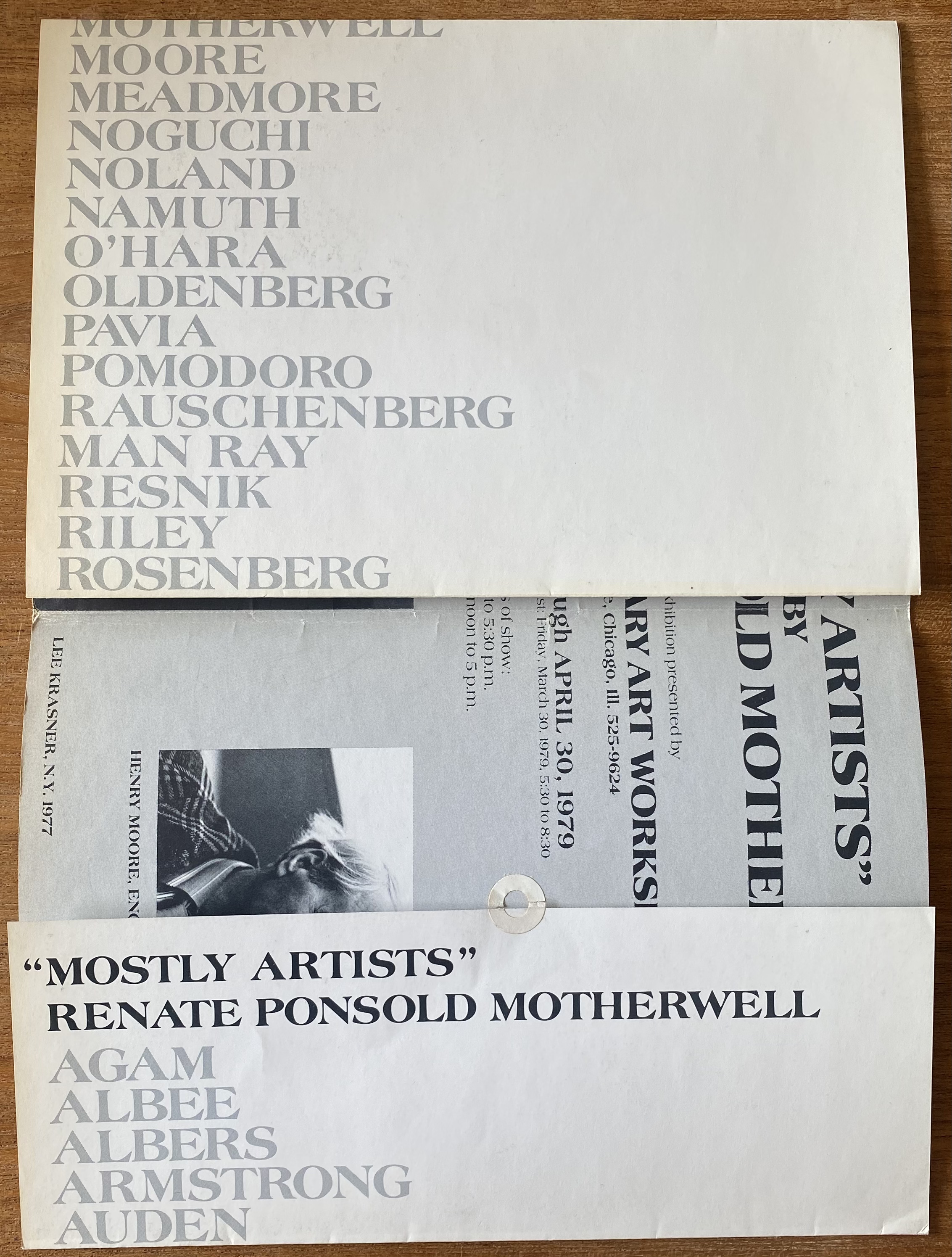 (Renate Ponsold). Renate Ponsold Motherwell. “Mostly Artists. The Contemporary Art Workshop, Chicago, Illinois, March 30 – April 30, 1979