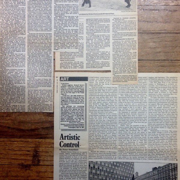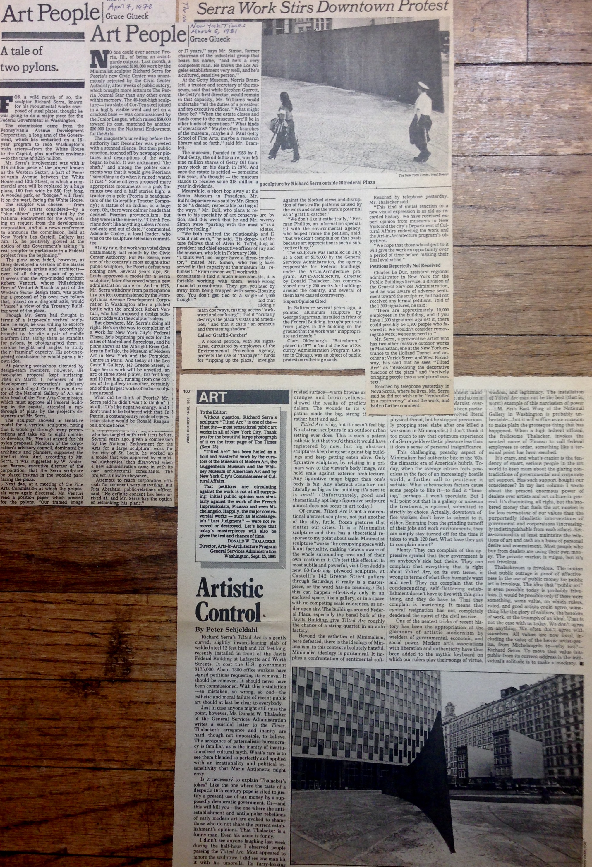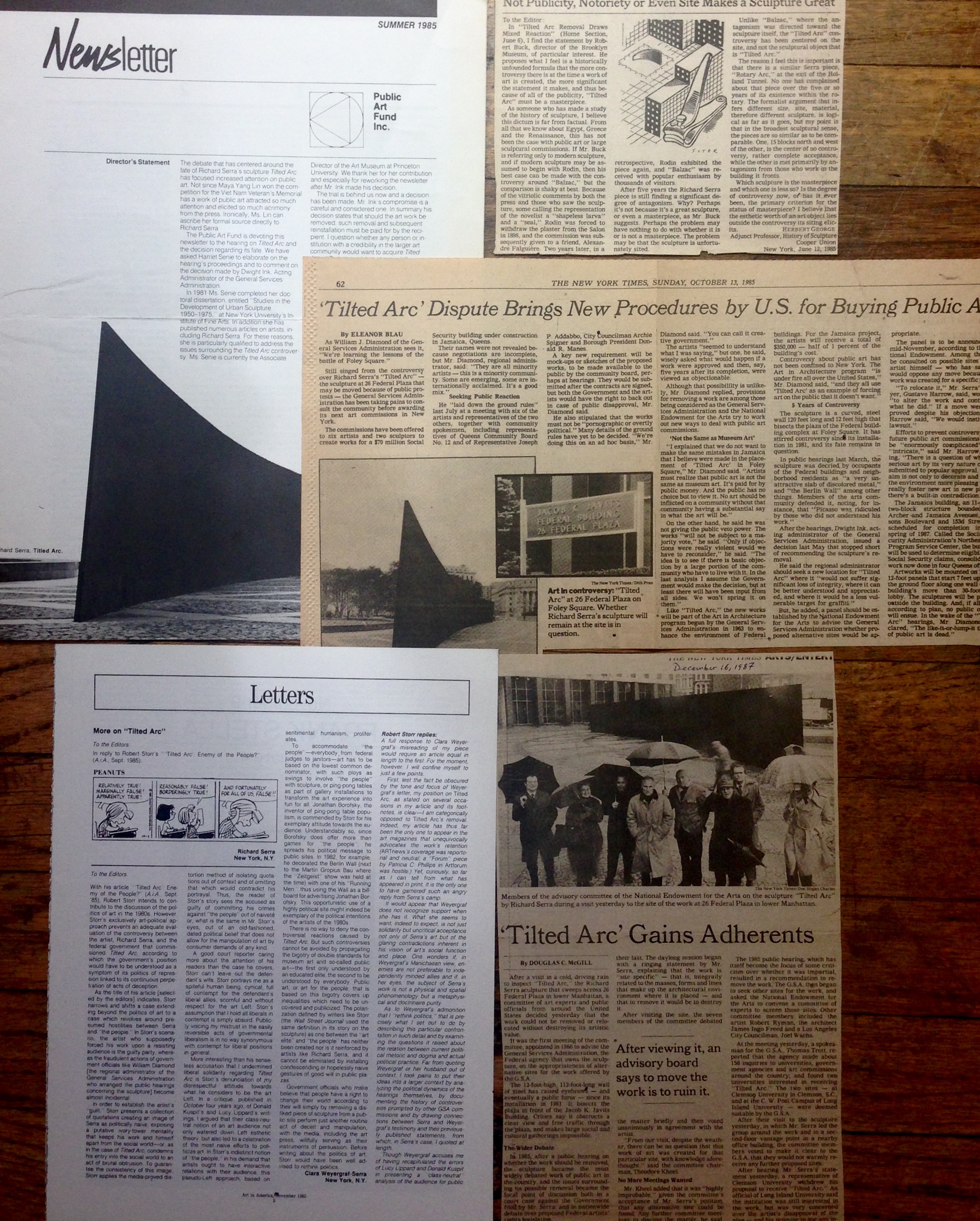 Richard Serra / “Tilted arc.” A file of 16 clippings. 1978 – 1987.