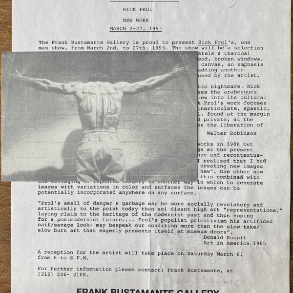 Rick Prol. New York. Frank Bustamante Gallery, New York, March 2-27, 1993