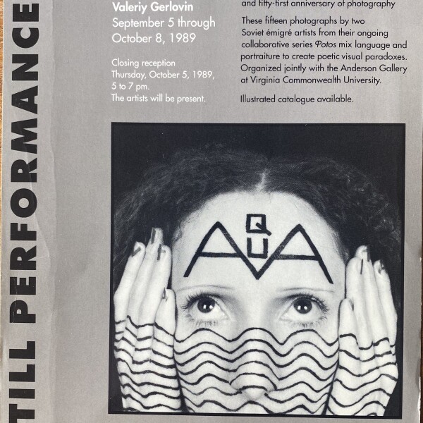 (Rimma Gerlovina / Valeriy Gerlovin). Rimma Gerlovina and Valery Gerlovin. Still Performances. MIT List Visual Arts Center, Cambridge, Massachusetts, September 5 – October 8, 1989