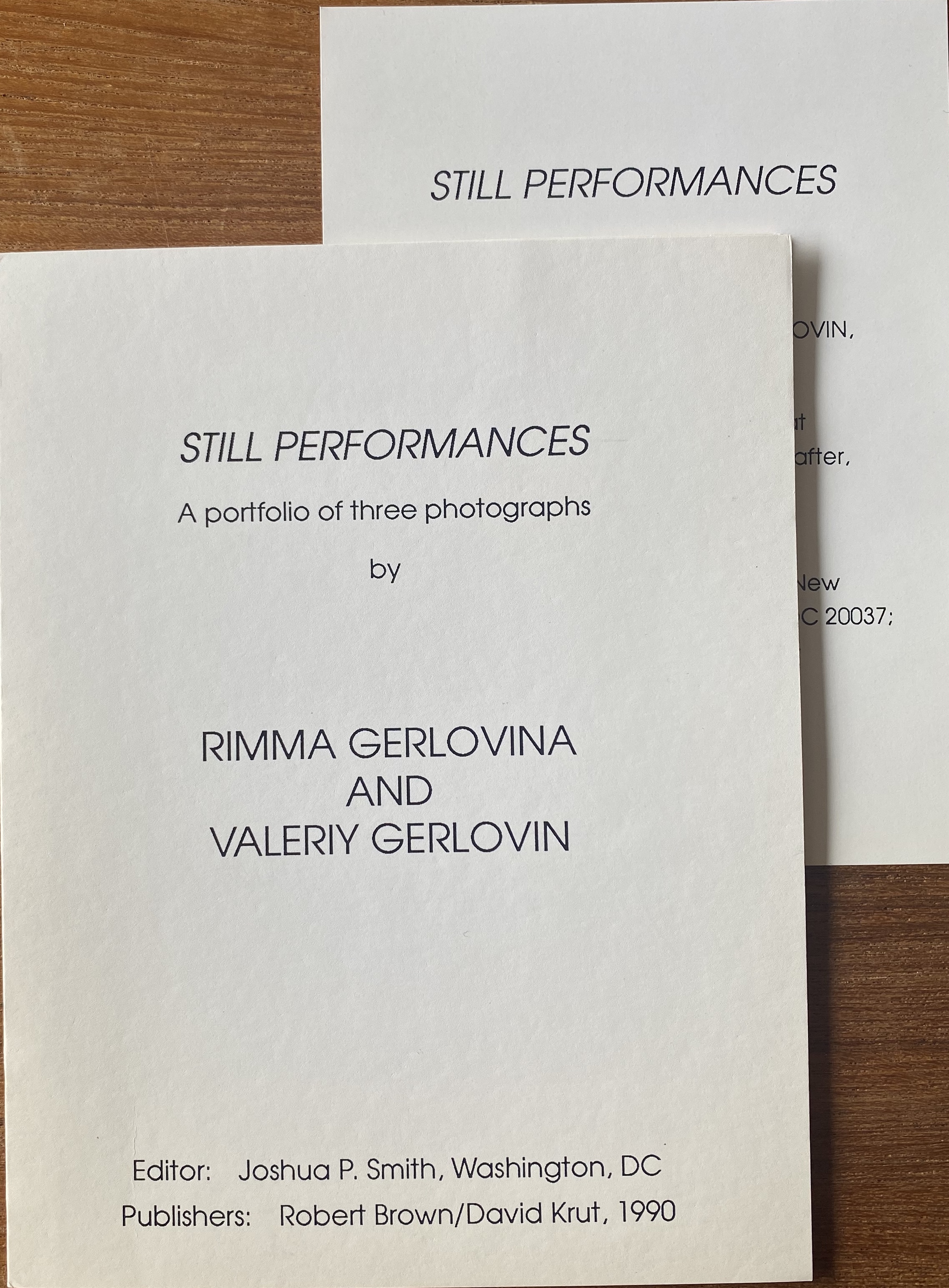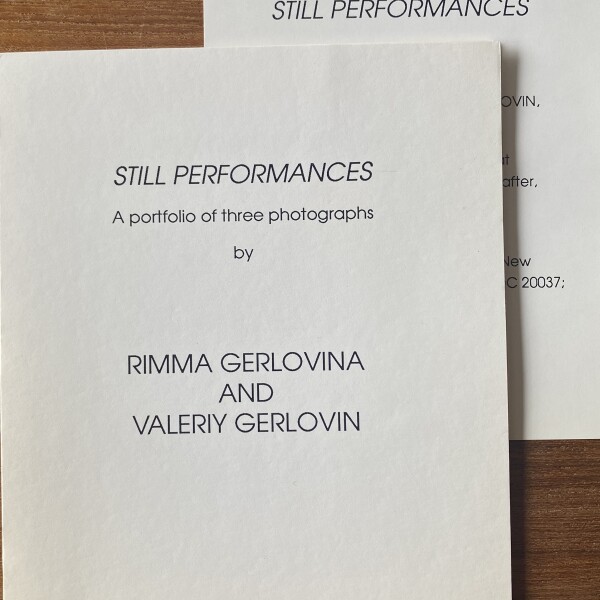 (Rimma Gerlovina / Valeriy Gerlovin). Still Performances; A portfolio of three photographs by Rimma Gerlovina and Valery Gerlovin. Washington, D.C.: Robert Brown / London David Krut, 1990
