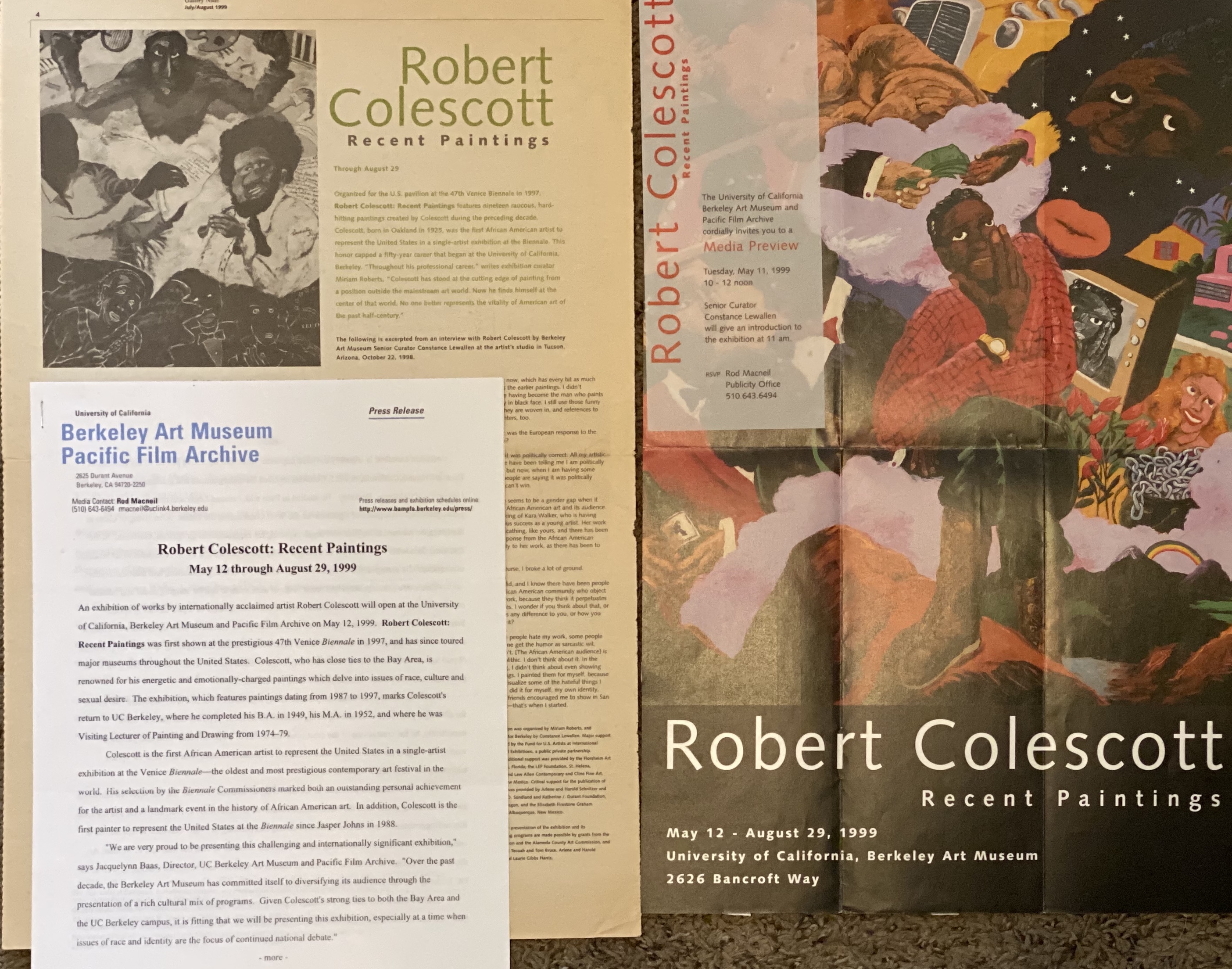 Robert Colescott. Recent Paintings. The University of California, Berkeley Art Museum / Pacific Film Archive, Berkeley, California, May 12 – August 29, 1999