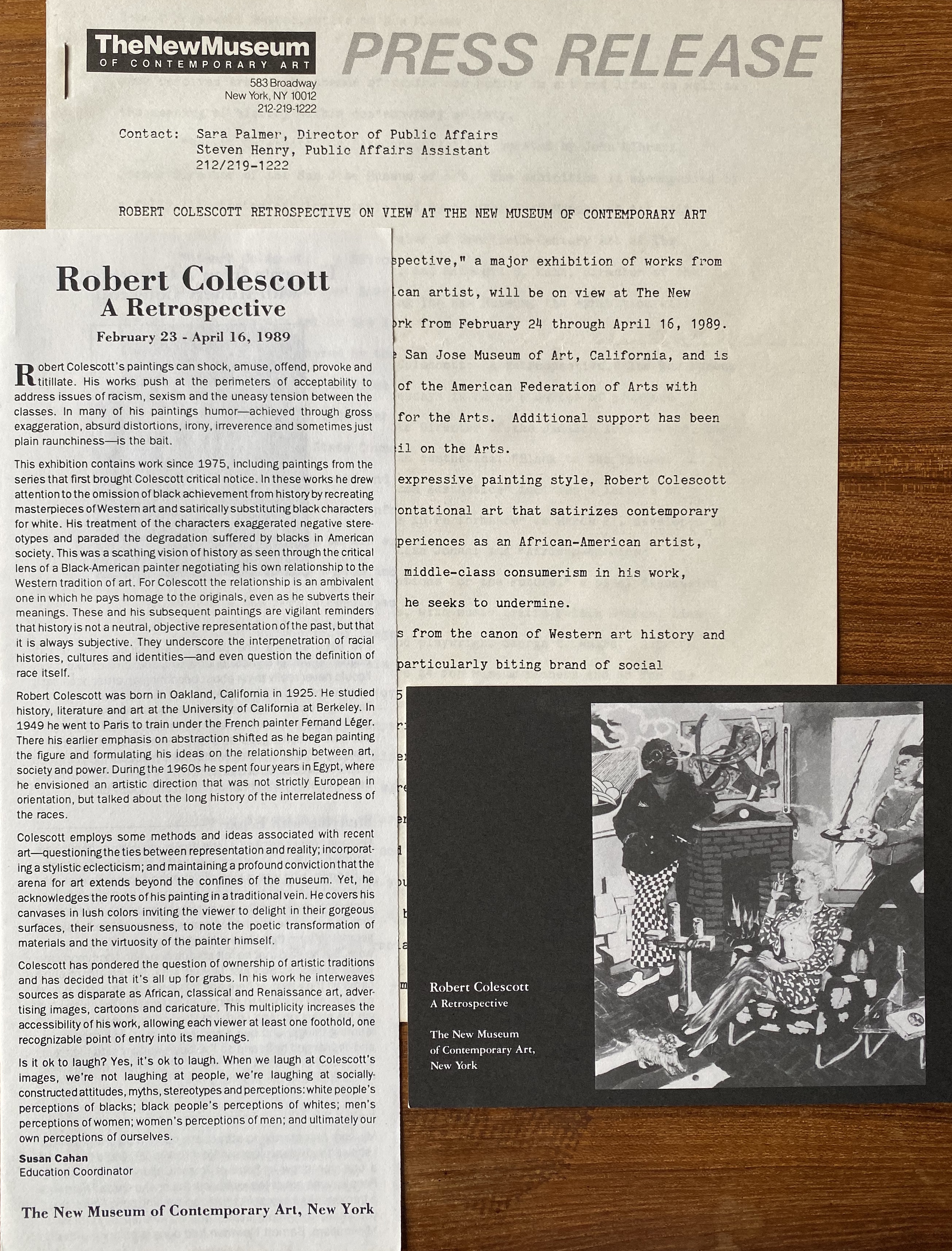(Robert Colescott). Robert Colescott: A Retrospective. The New Museum of Contemporary Art, New York, February 23 – April 16, 1989