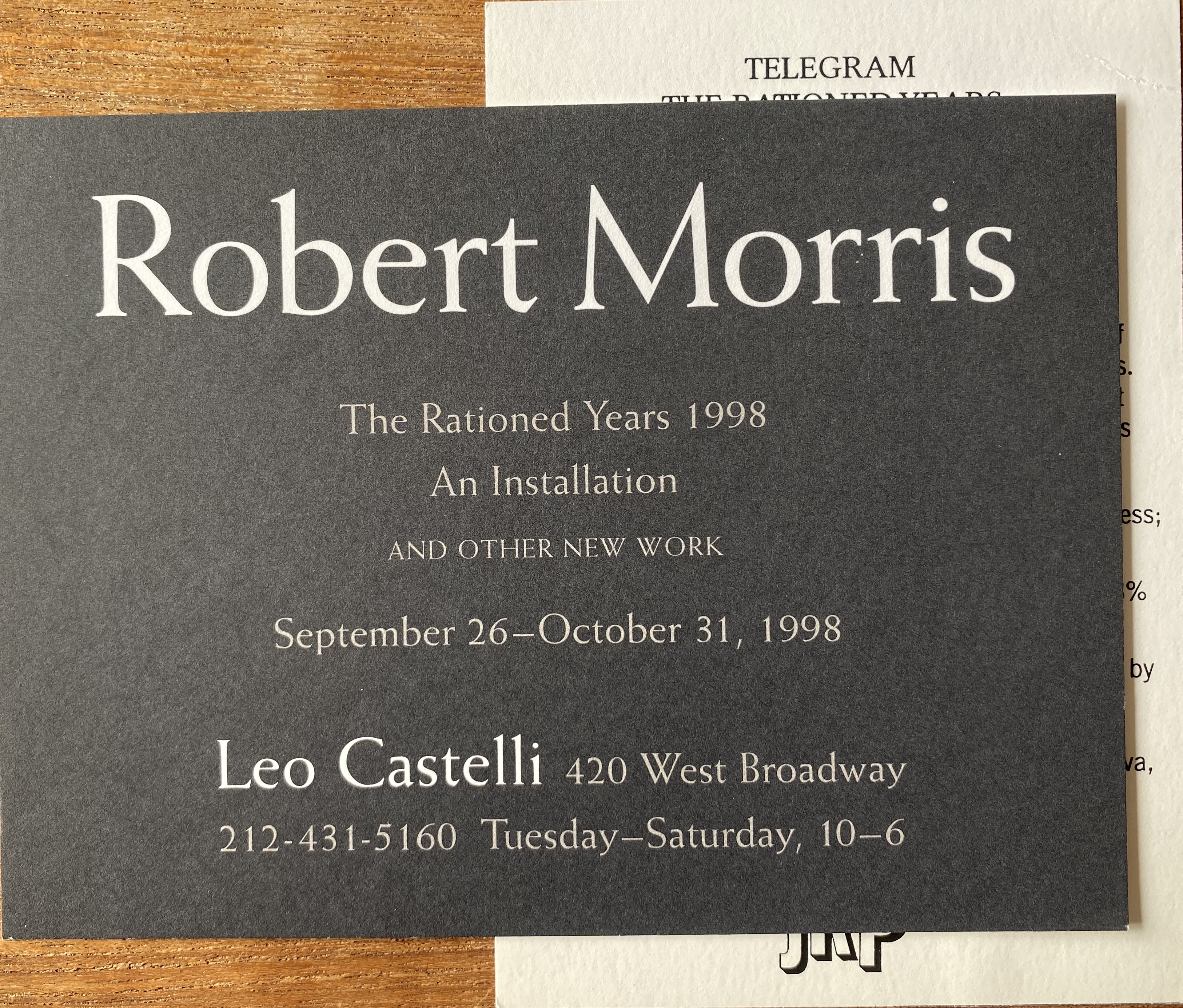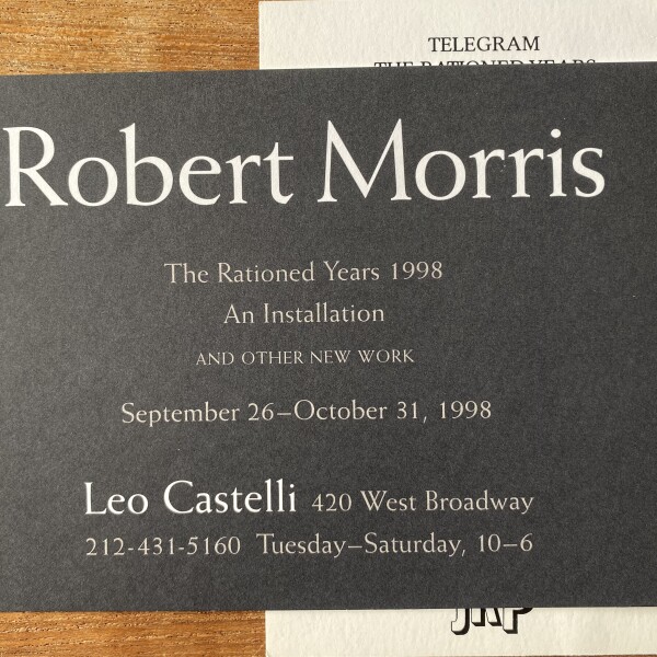 Robert Morris. The Rationed Years 1998: An Installation, and other new work. Leo Castelli, New York, September 26 – October 31, 1998