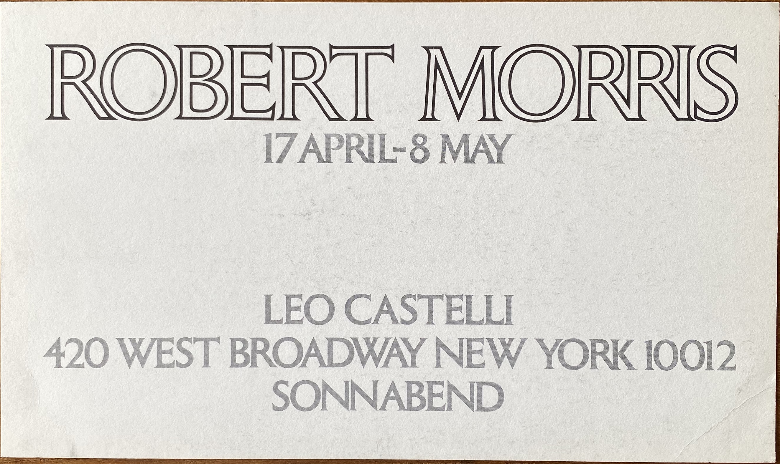 (Robert Morris). Robert Morris. Leo Castelli, New York / Sonnabend, New York, 17 April – 8 May [1976]