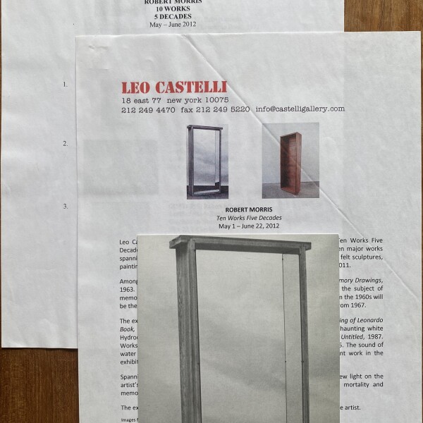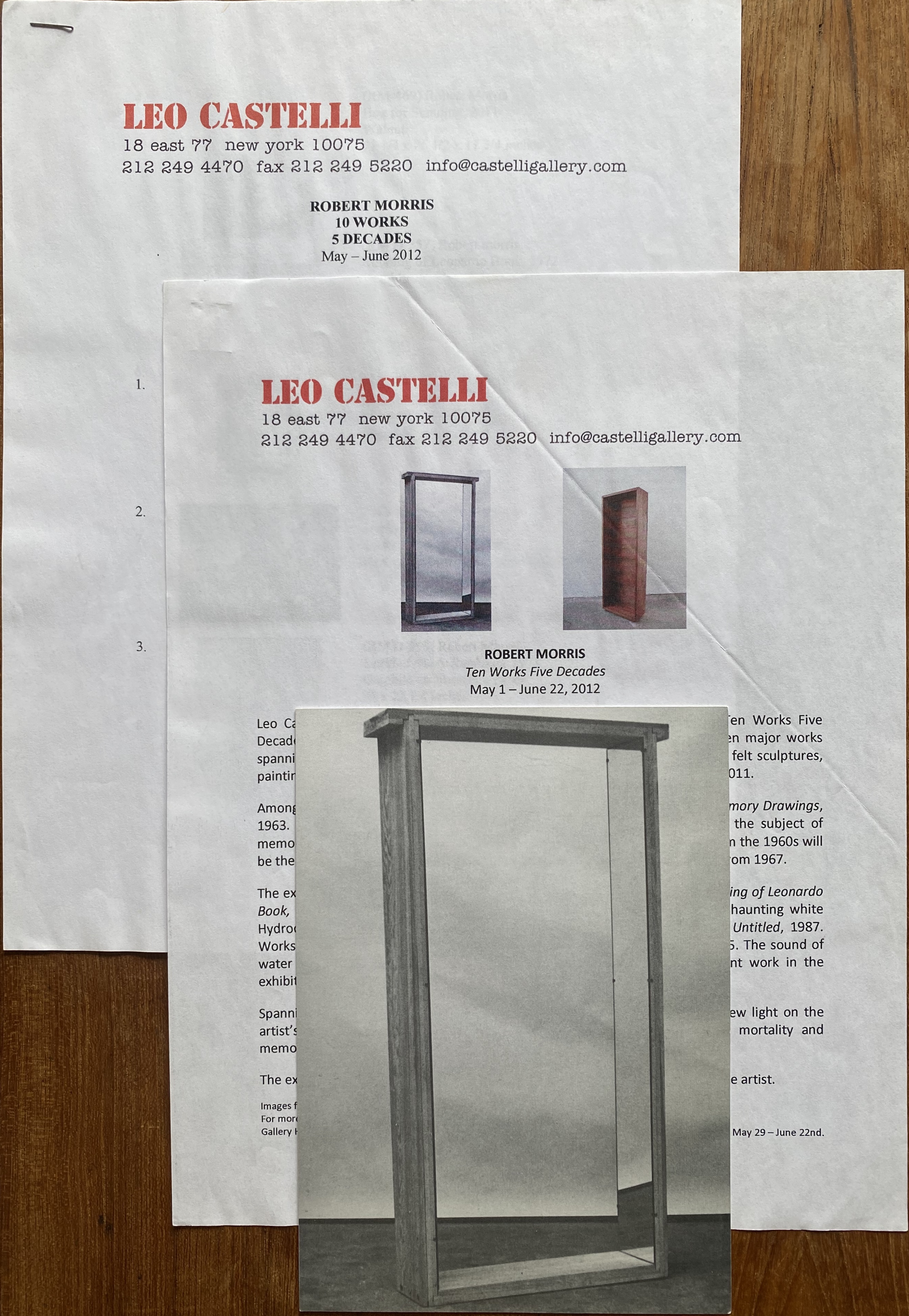 Robert Morris. Ten Works Five Decades. Leo Castelli, New York, May 1 – June 22, [2012]