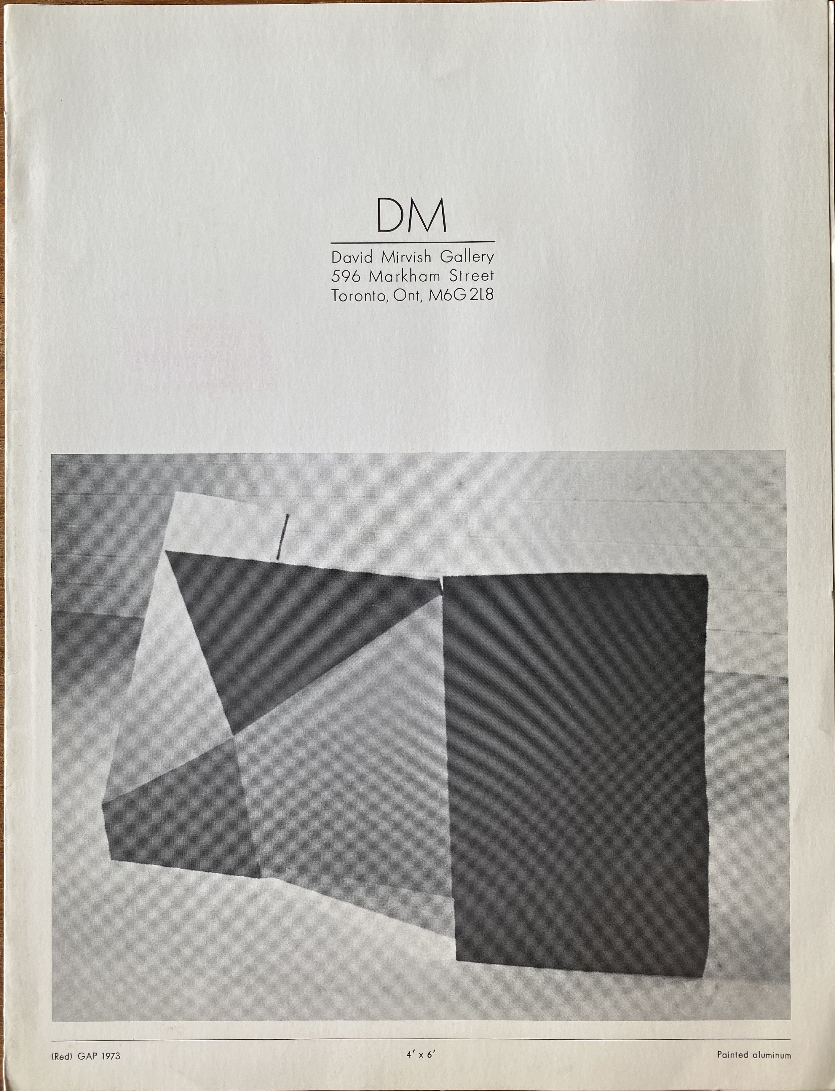 (Robert Murray). … an exhibition of recent sculpture by Robert Murray. David Mirvich Gallery, Toronto, Ontario, March 9, 1974