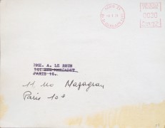 Light staining in lower right area of text side; stain in lower right of address side