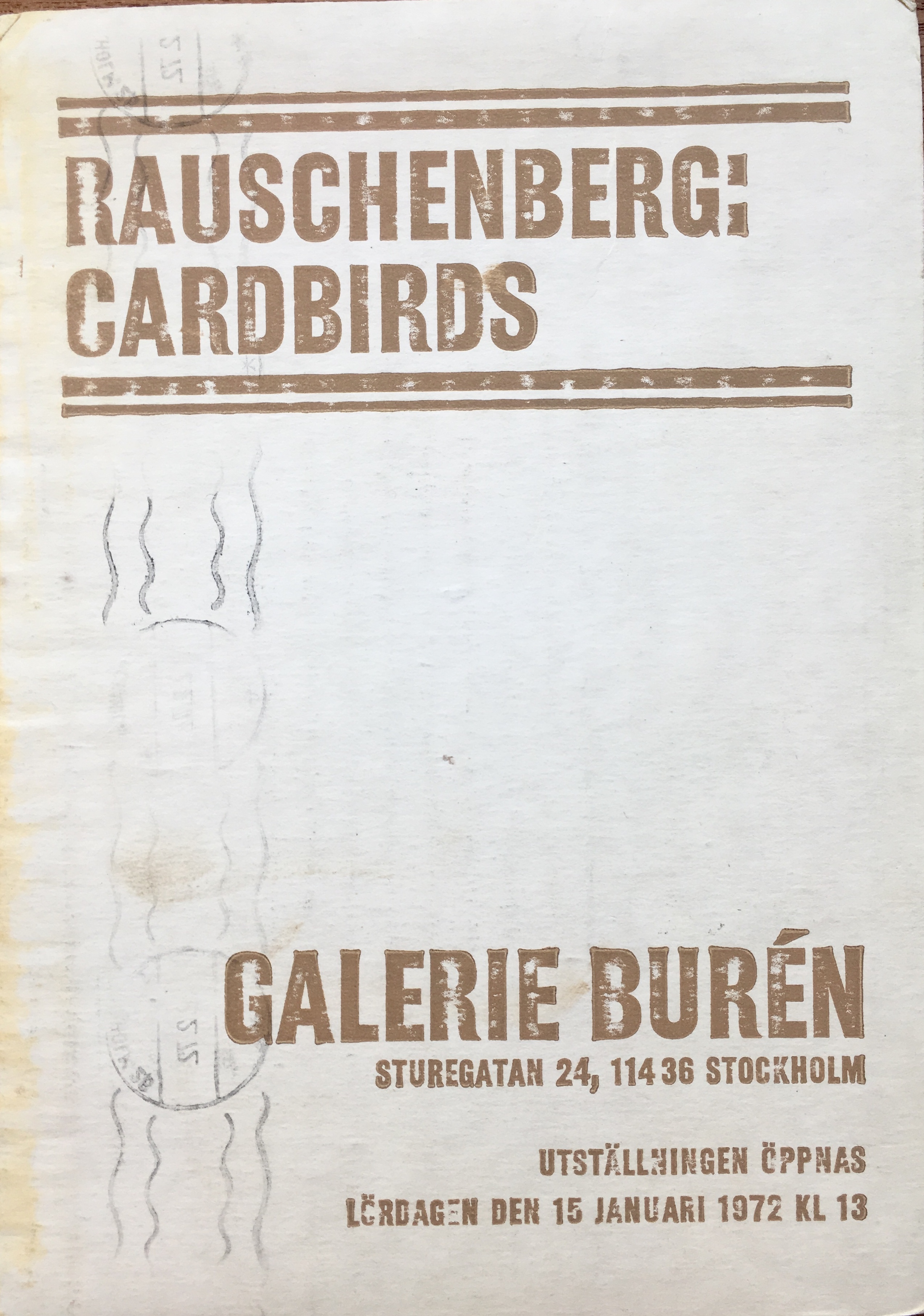 (Robert Rauschenberg). Rauschenberg: Cardbirds, Galerie Buren, Stockholm, 15 januari 1972