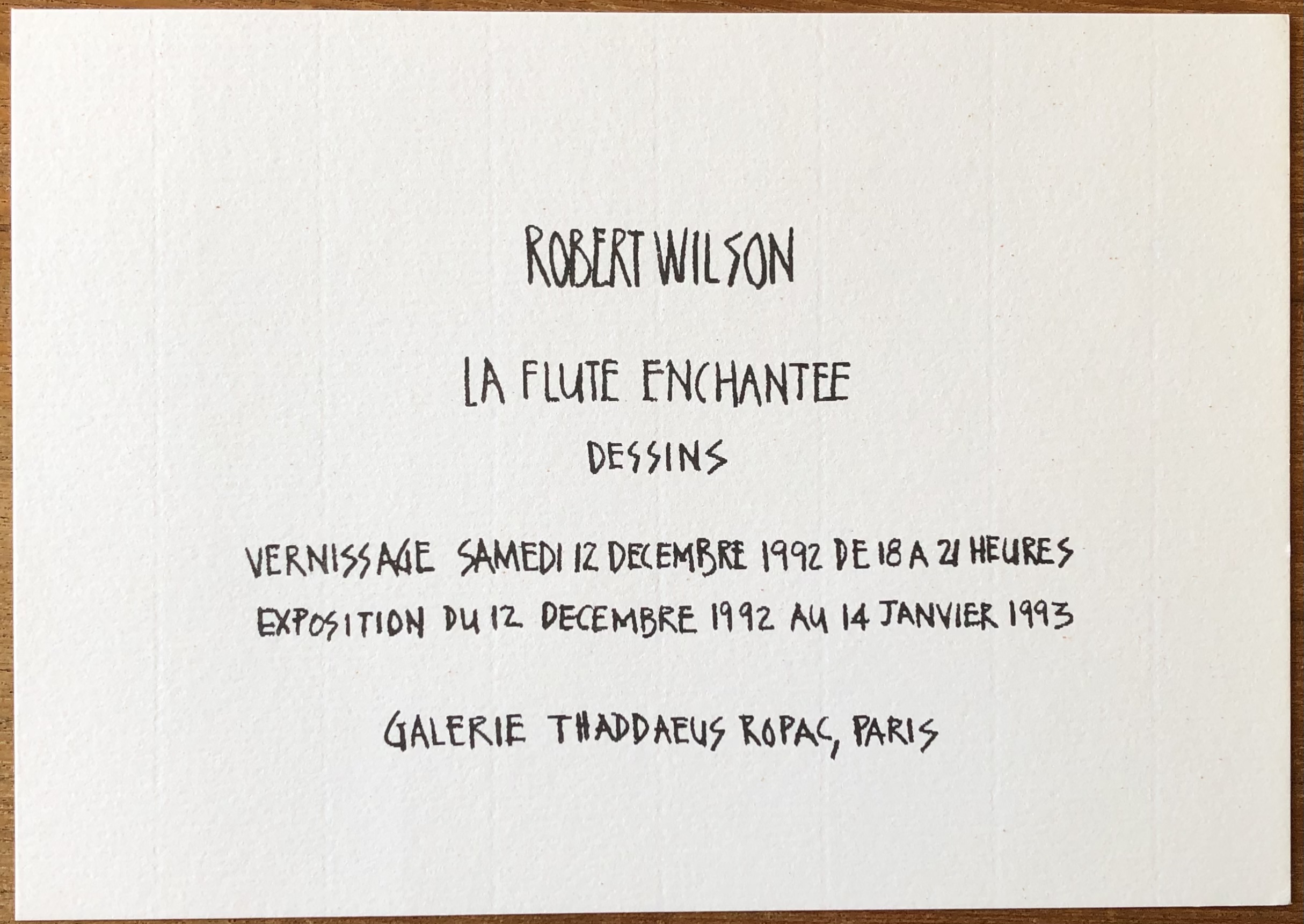 Robert Wilson. La flûte enchantée. Dessins. Galerie Thaddaeus Ropac, Paris, 12 décembre 1992 – 14 janvier 1993