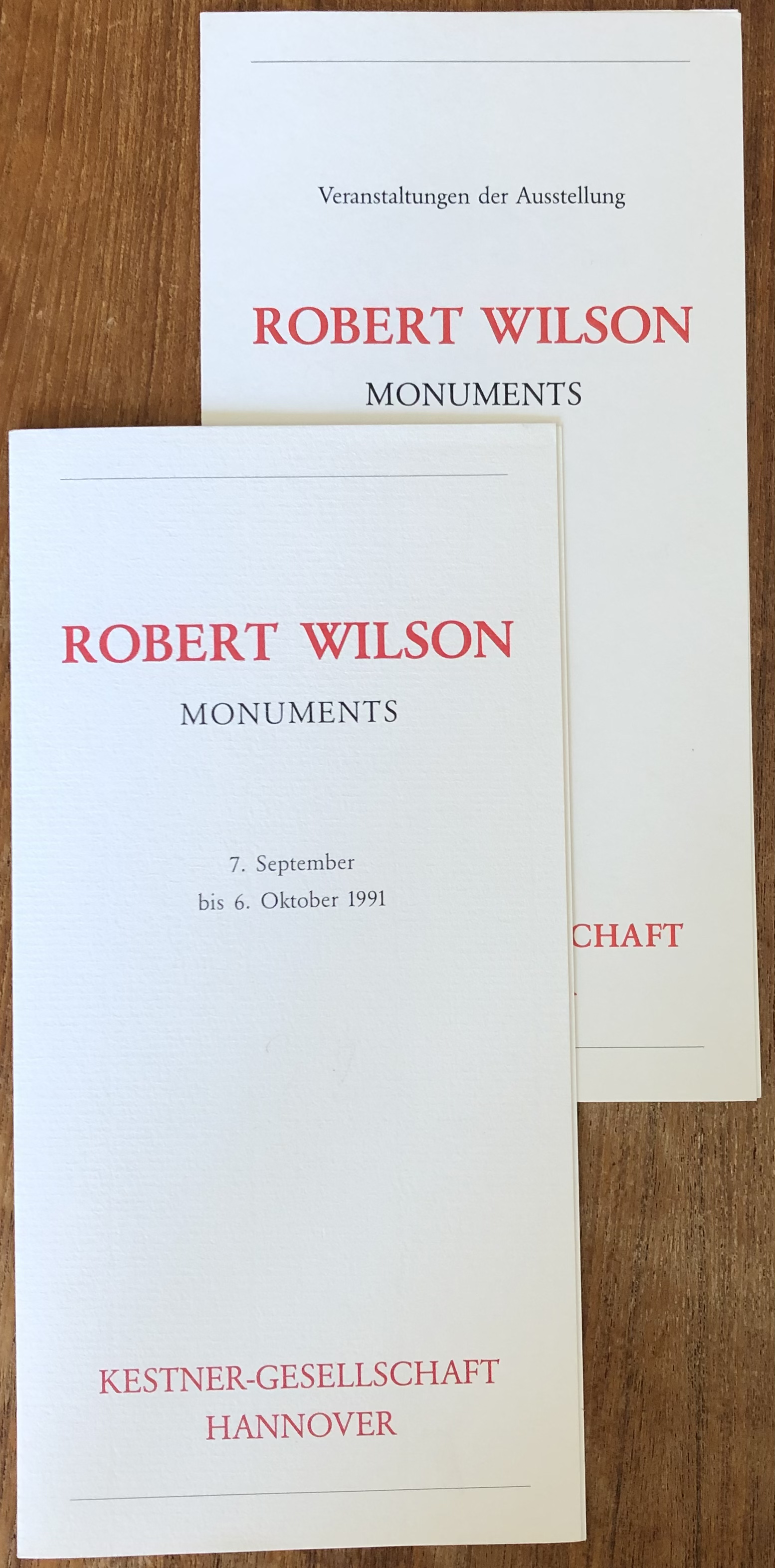 Robert Wilson. Monuments. Kestner-Gesellschaft, Hanover, 7. September – 6. Oktober 1991