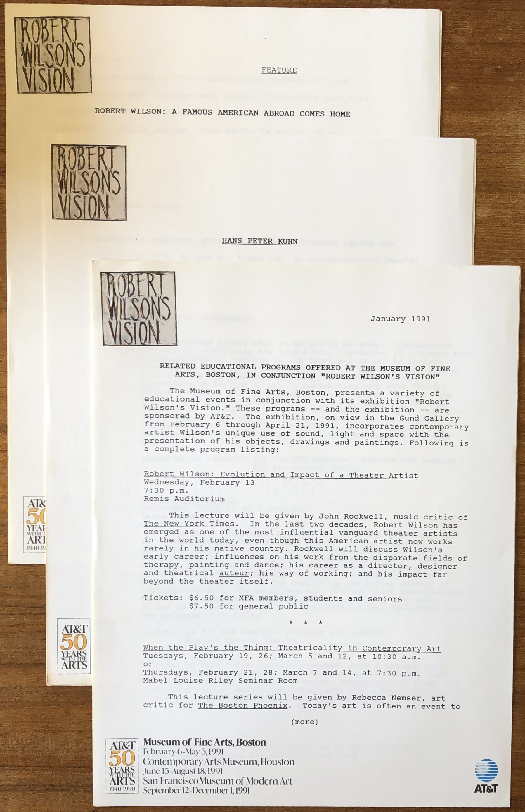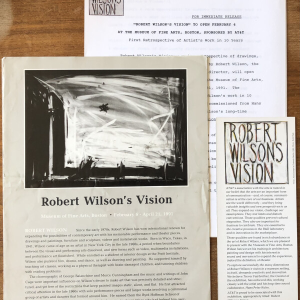 - Related Educational programs offered at the Museum of Fine Arts, Boston, in conjunction with “Robert Wilson’s Vision”. January 1991. 2 pages (=sheets)