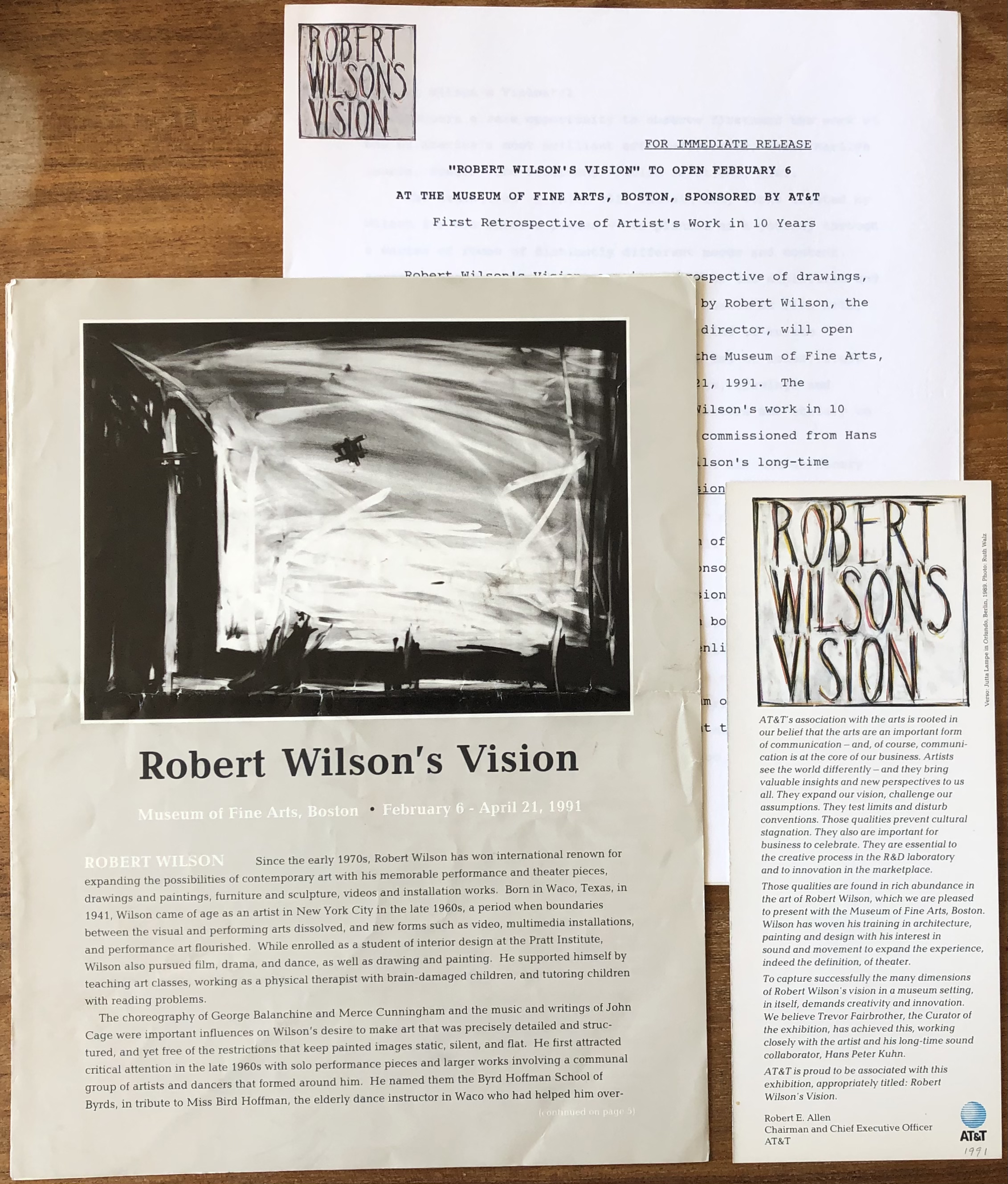 (Robert Wilson). Robert Wilson’s Vision. Museum of Fine Arts, Boston, February 6 – April 21, 1991. 6 items.