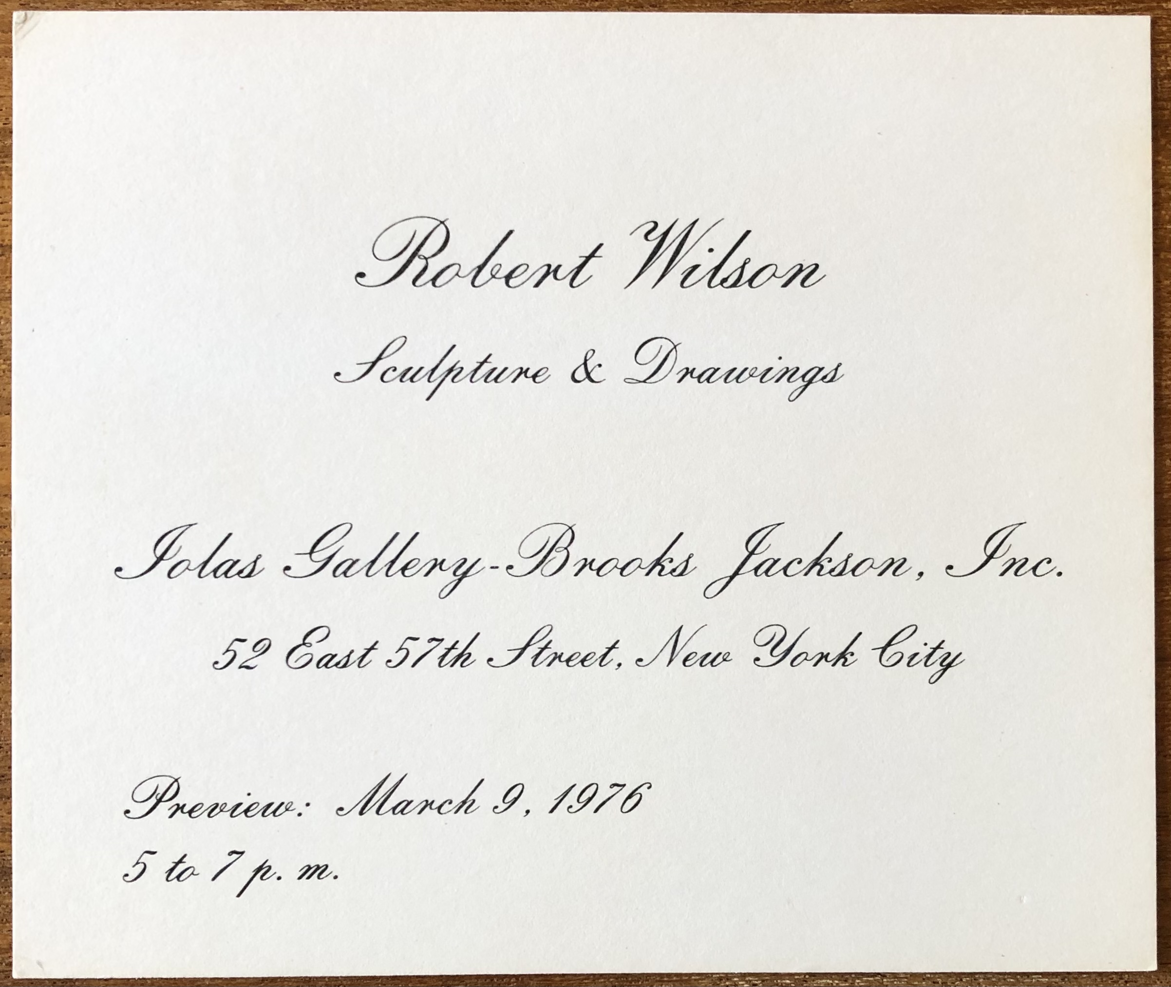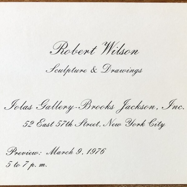 Robert Wilson – Sculpture & Drawings. Iolas Gallery – Brooks Jackson, Inc., New York, March 9, 1976