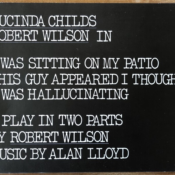 Robert Wilson. I Was Sitting On My Patio This Guy Appeared I Thought I Was Hallucinating. No place: Printed by Michael White, 1978