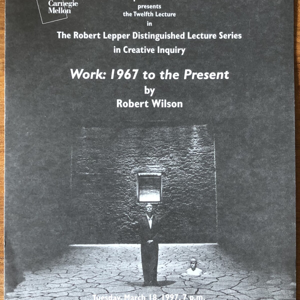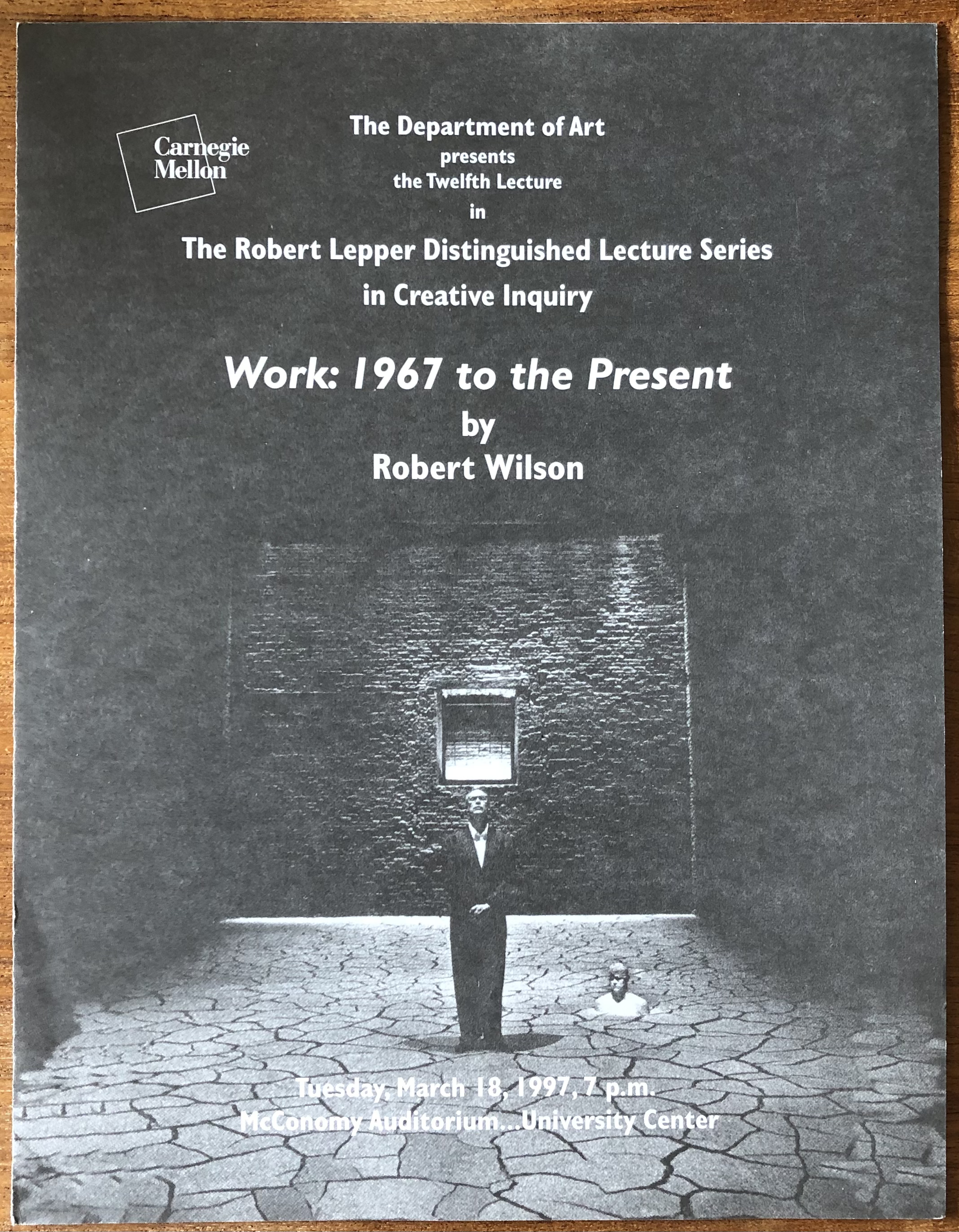 (Robert Wilson). Work: 1967 to the Present by Robert Wilson. McConomy Auditorium, University Center, Carnegie Mellon, March 18, 1997. The Robert Lepper Distinguished Lecture Series in Creative Inquiry.