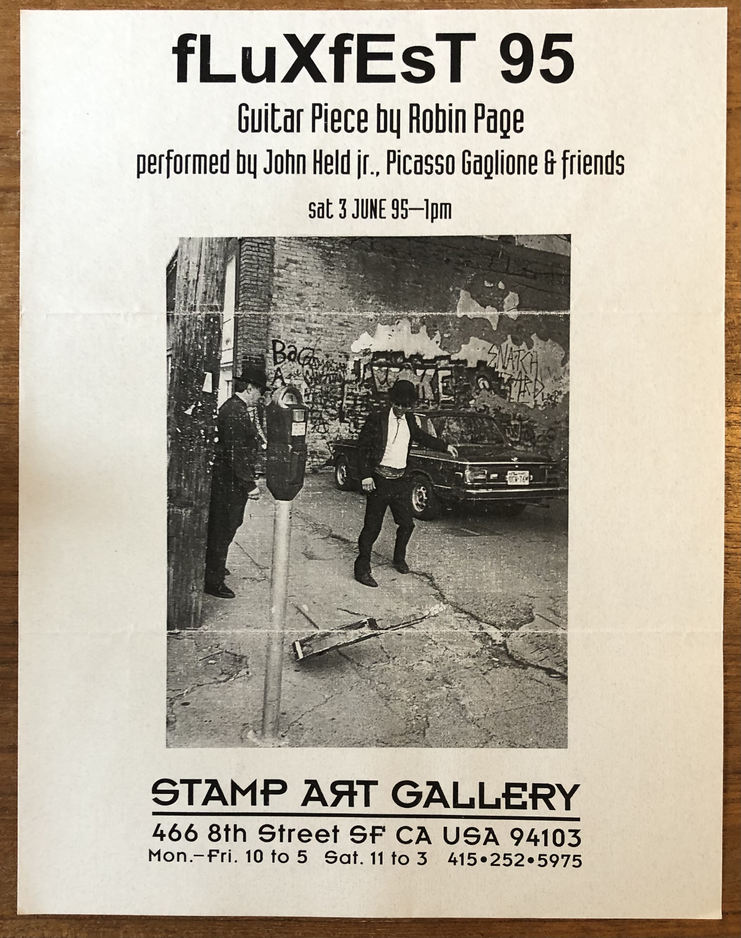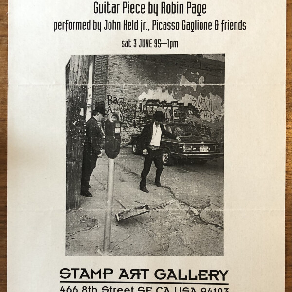 (Robin Page). Guitar Piece by Robin Page, performed by John Held Jr., Picasso Gaglione & friends. Stamp Art Gallery, San Francisco, California, 3 June 1995