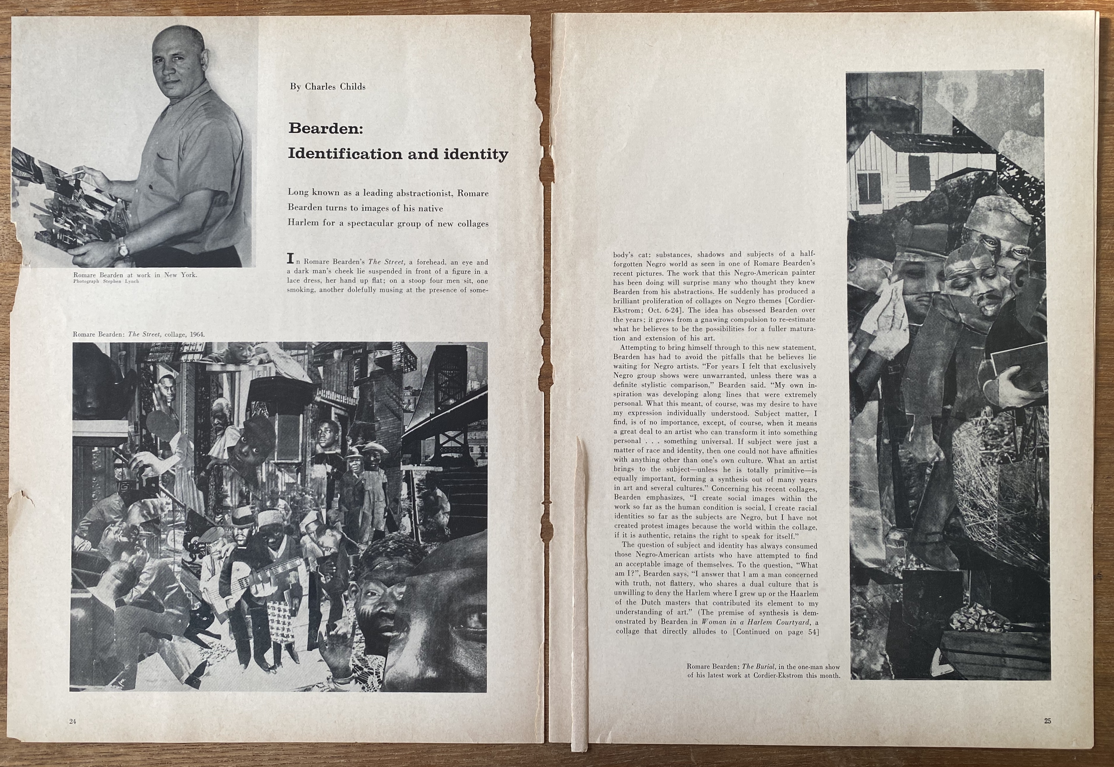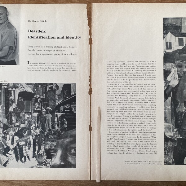 (Romare Bearden). Charles Childs. Bearden: Identification and Identity. ARTnews. October 1964. Clipping
