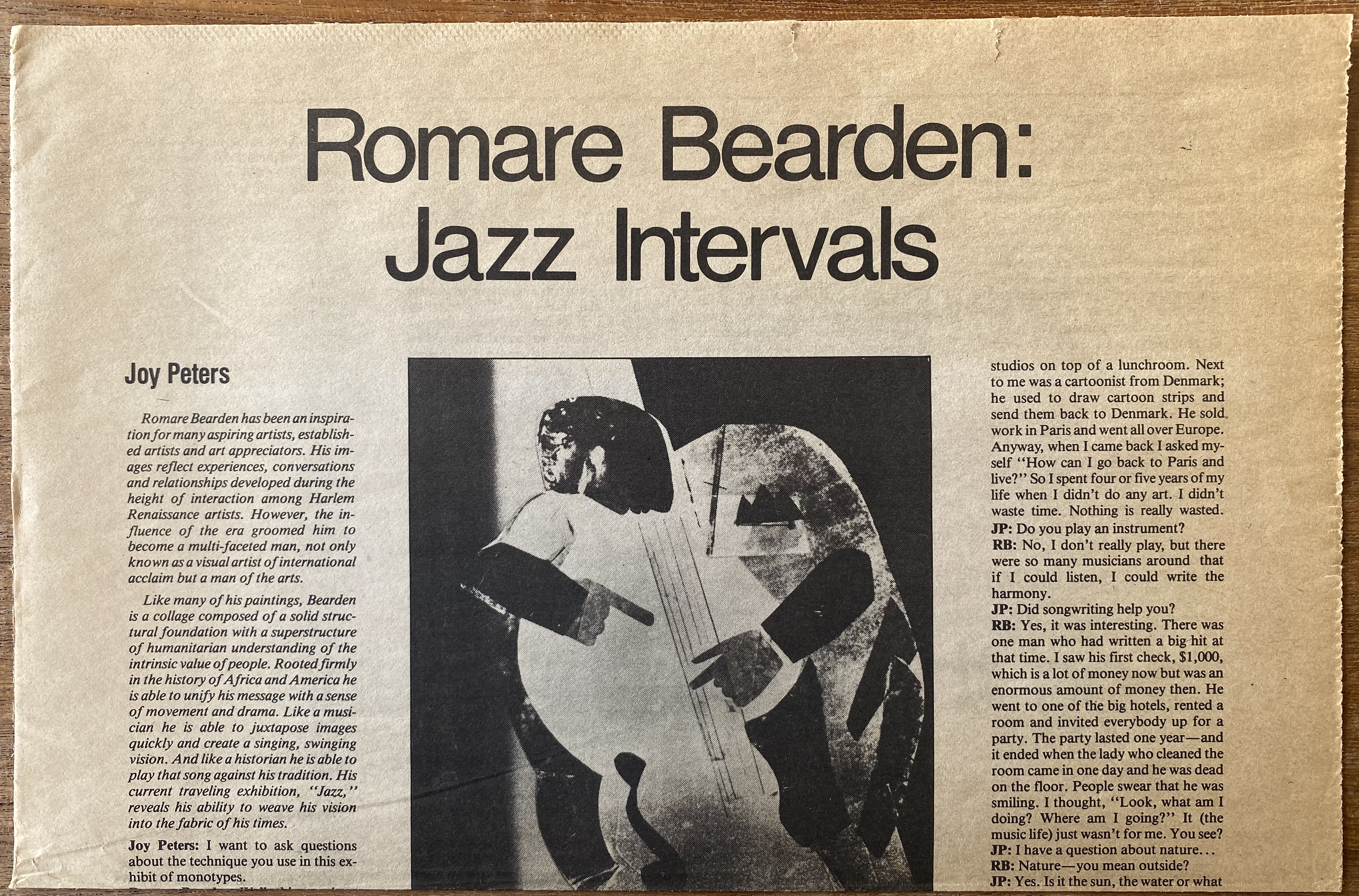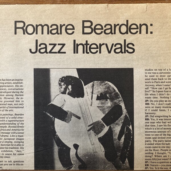 (Romare Bearden). Joy Peters. Romare Bearden: Jazz Intervals. Art Papers. Volume 7/#1, January/February 1983. Clipping.