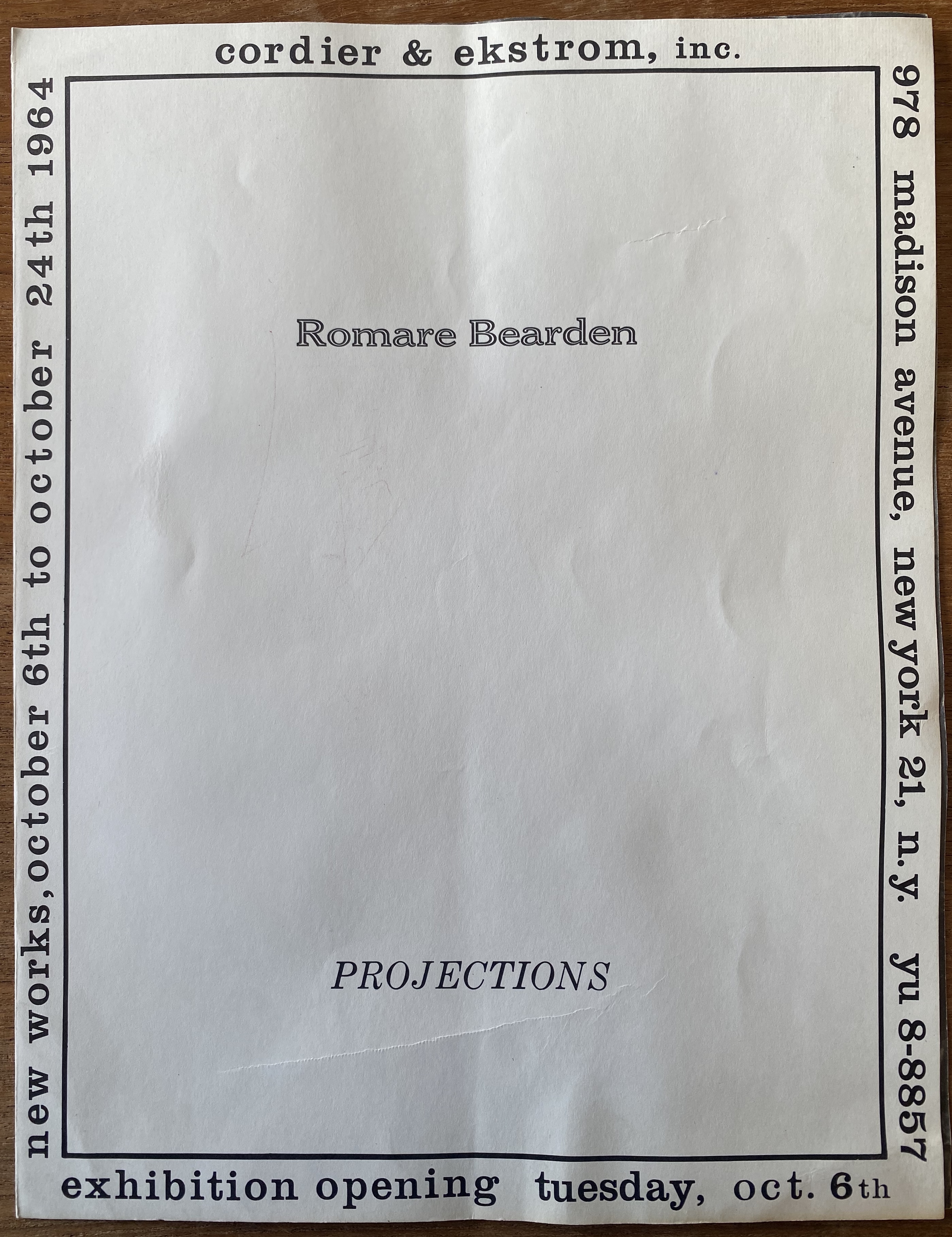 Romare Bearden. Projections. Cordier & Ekstrom, New York, October 6-24, 1964