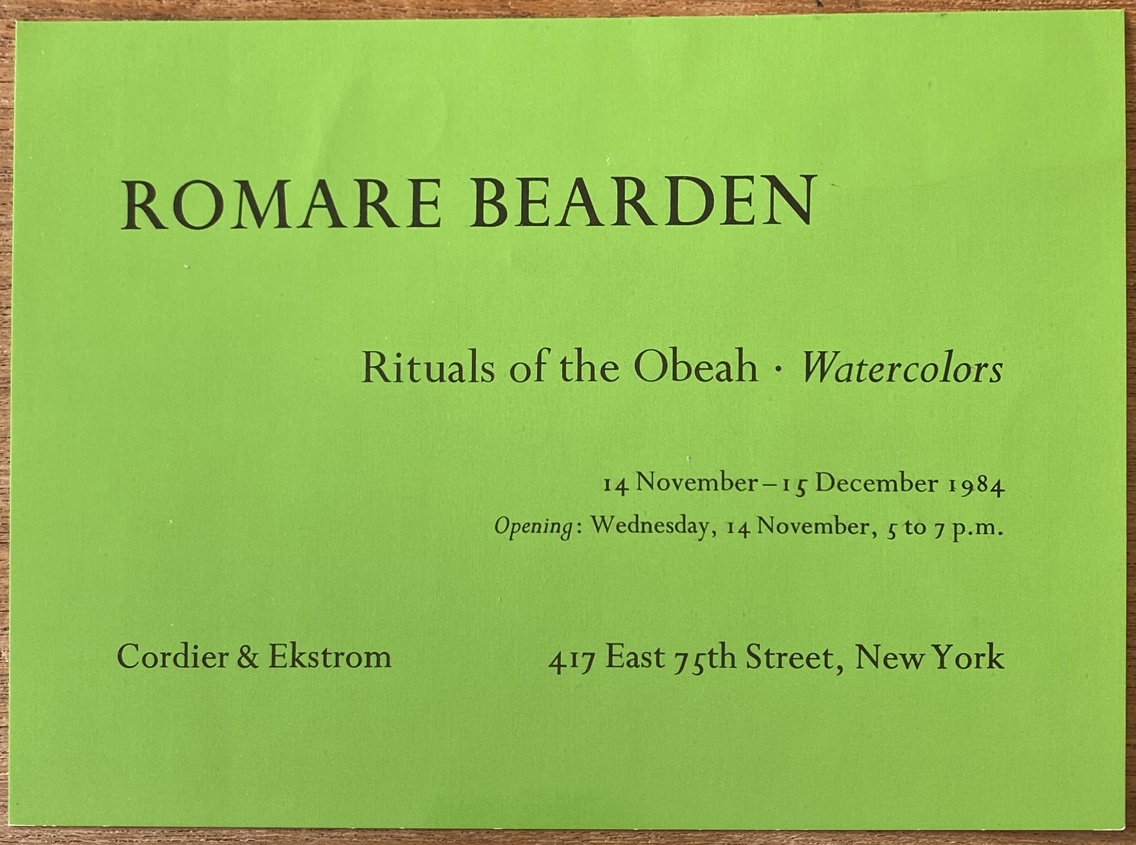 Romare Bearden. Rituals of the Obeah. Watercolors. Cordier & Ekstrom, New York, 14 November – 15 December 1984