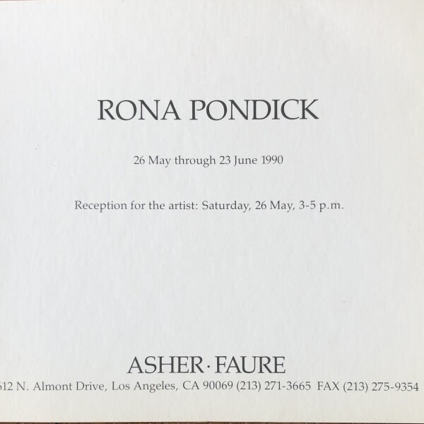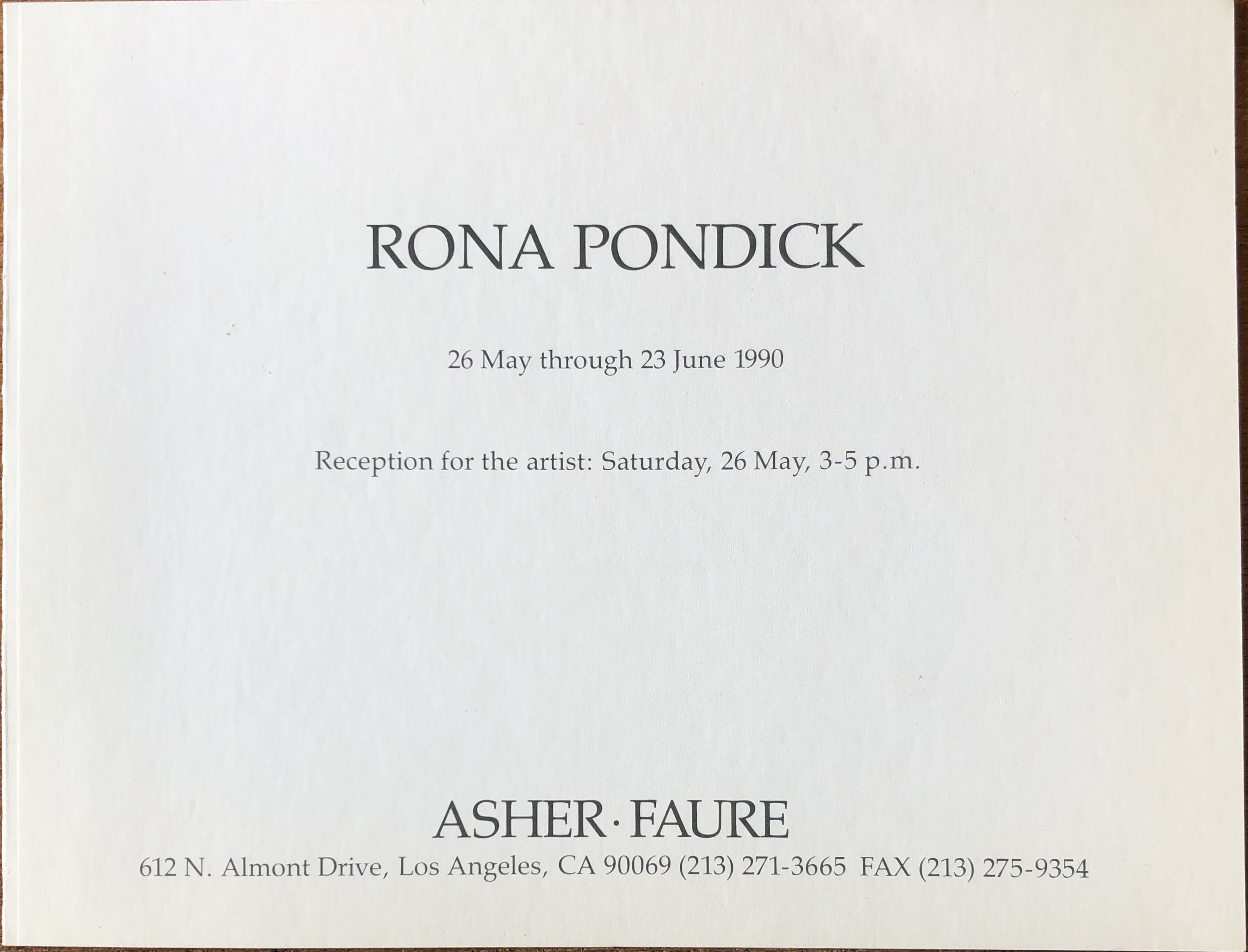 (Rona Pondick). Rona Pondick. Asher.Faure, Los Angeles, California, 26 May – 23 June 1990