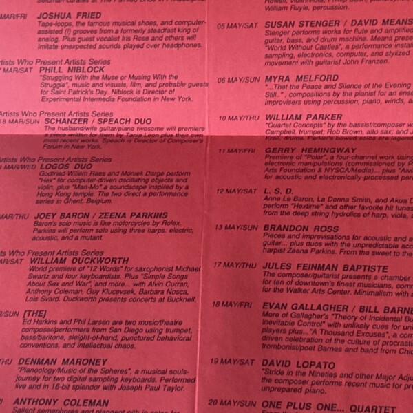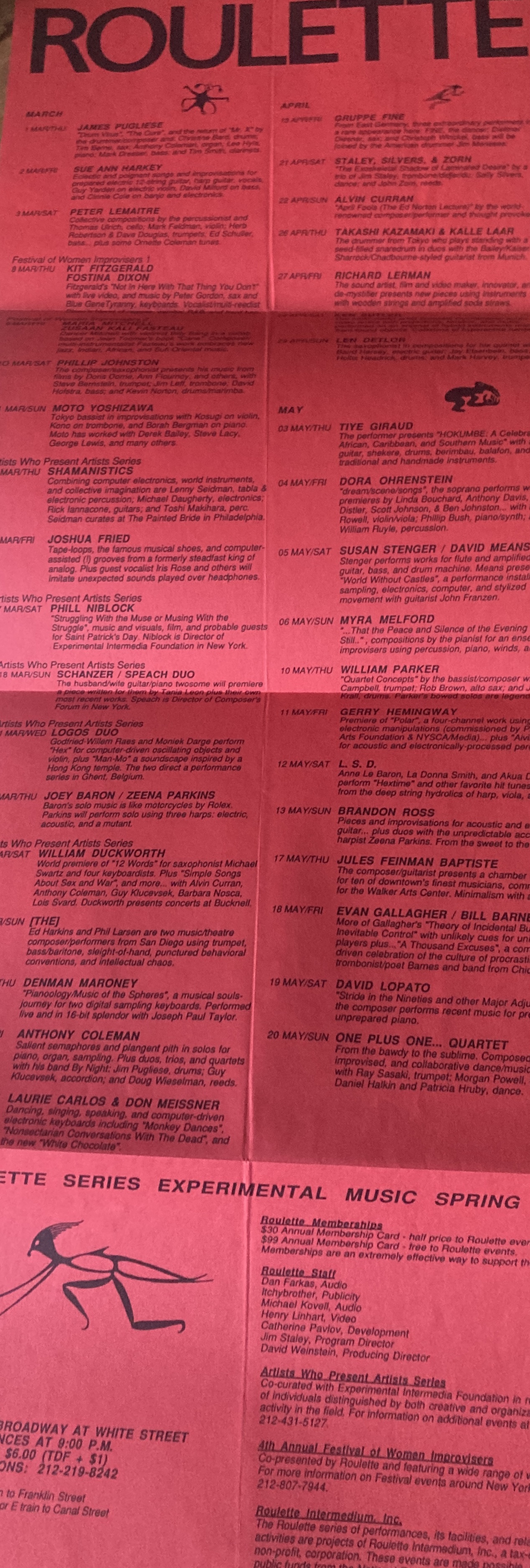 (Roulette, New York). Roulette Series Experimental Music Spring 1990.