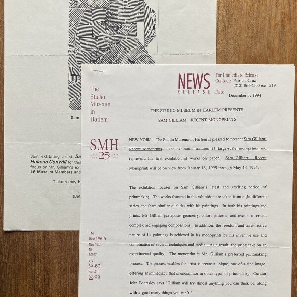 (Sam Gilliam). The Studio Museum in Harlem presents Sam Gilliam: Recent Monoprints