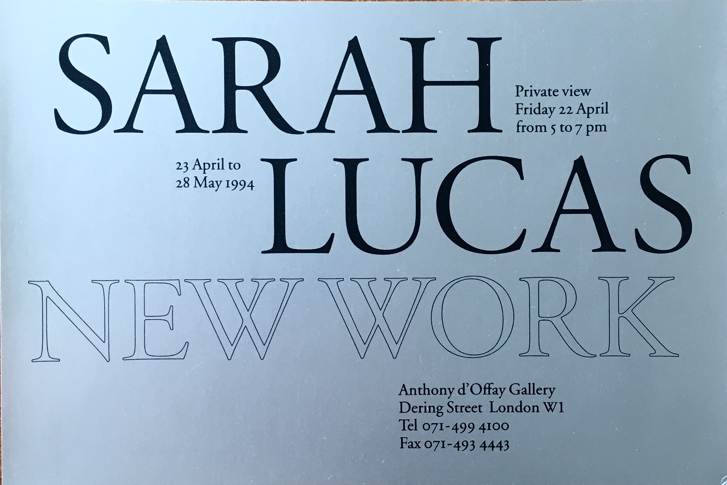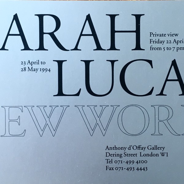 Sarah Lucas. New work (recto) / Got a Salmon on (Prawn) (verso). Anthony d’Offay Gallery, London, 22, 23 April – 28 May 1994