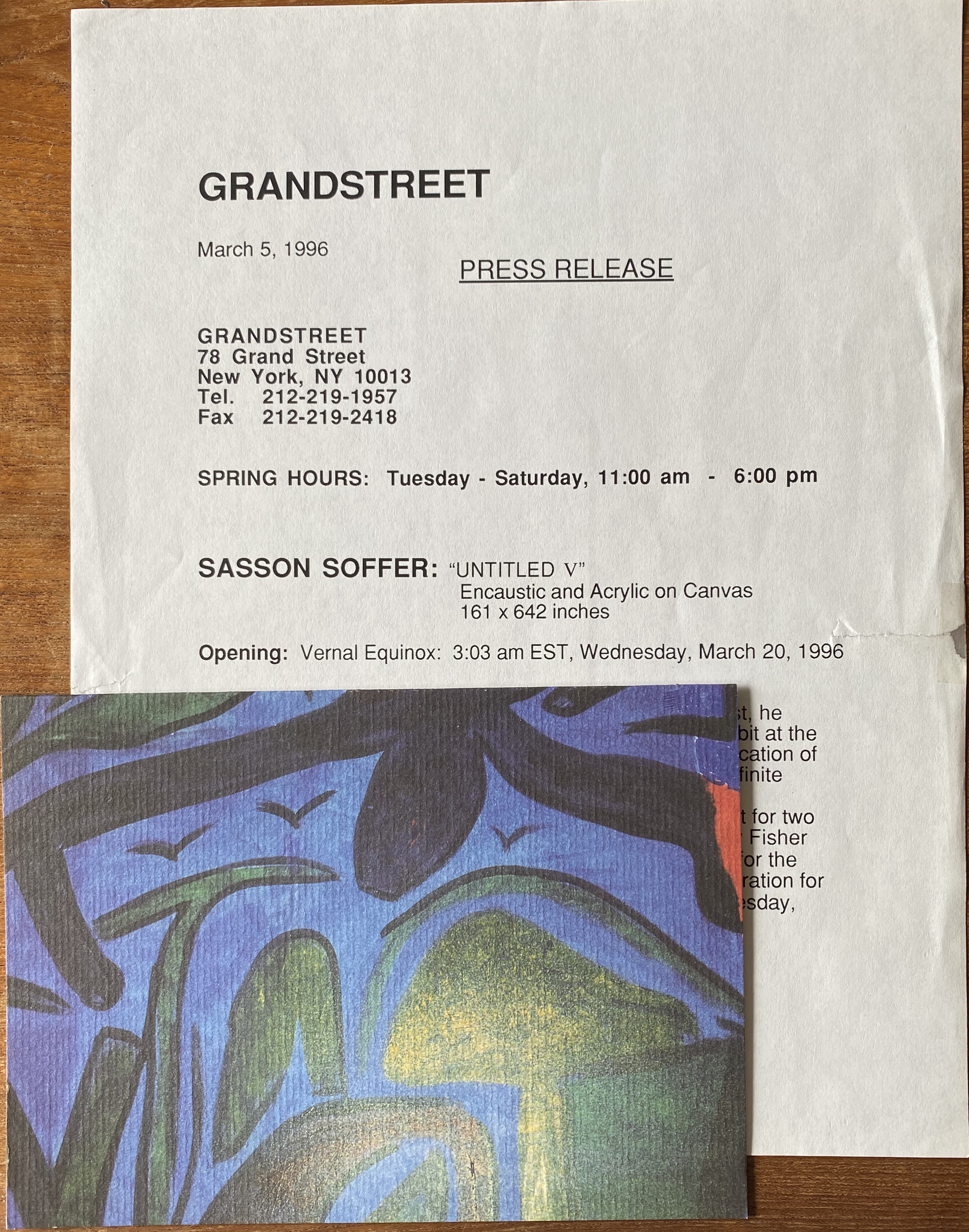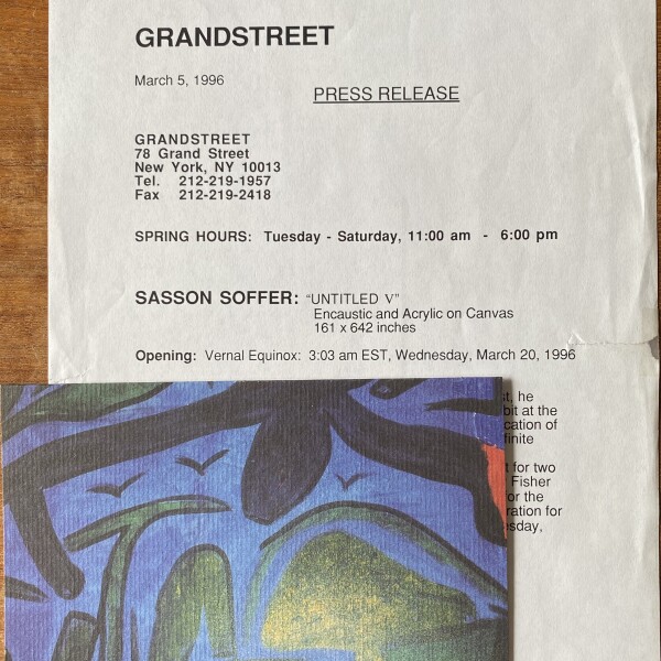 Sasson Soffer. “Untitled V”. Grand Street, New York. Opening March 20, 1996