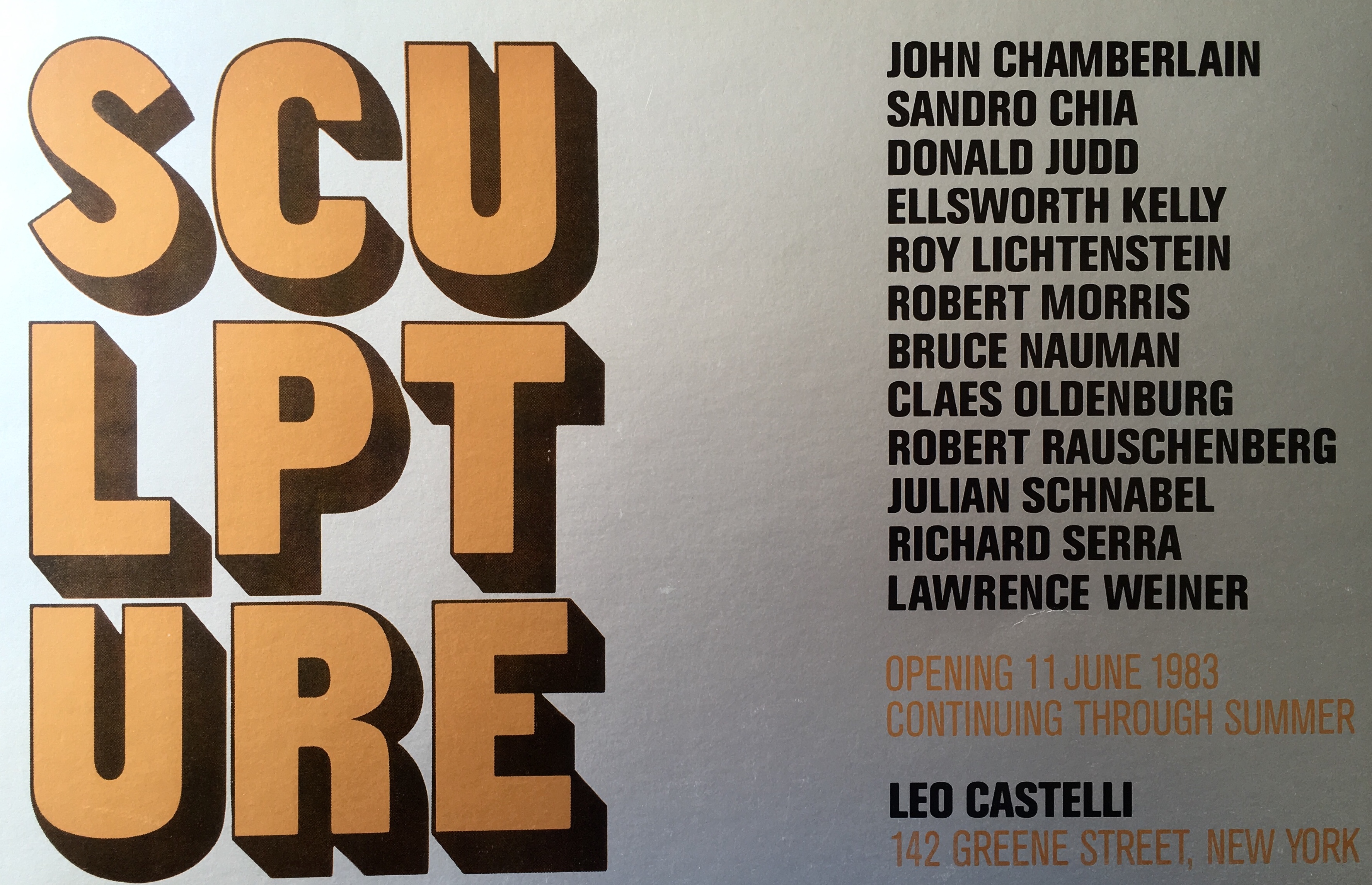 Sculpture Castelli, New York. Opening 11 June 1983, continuing through Summer