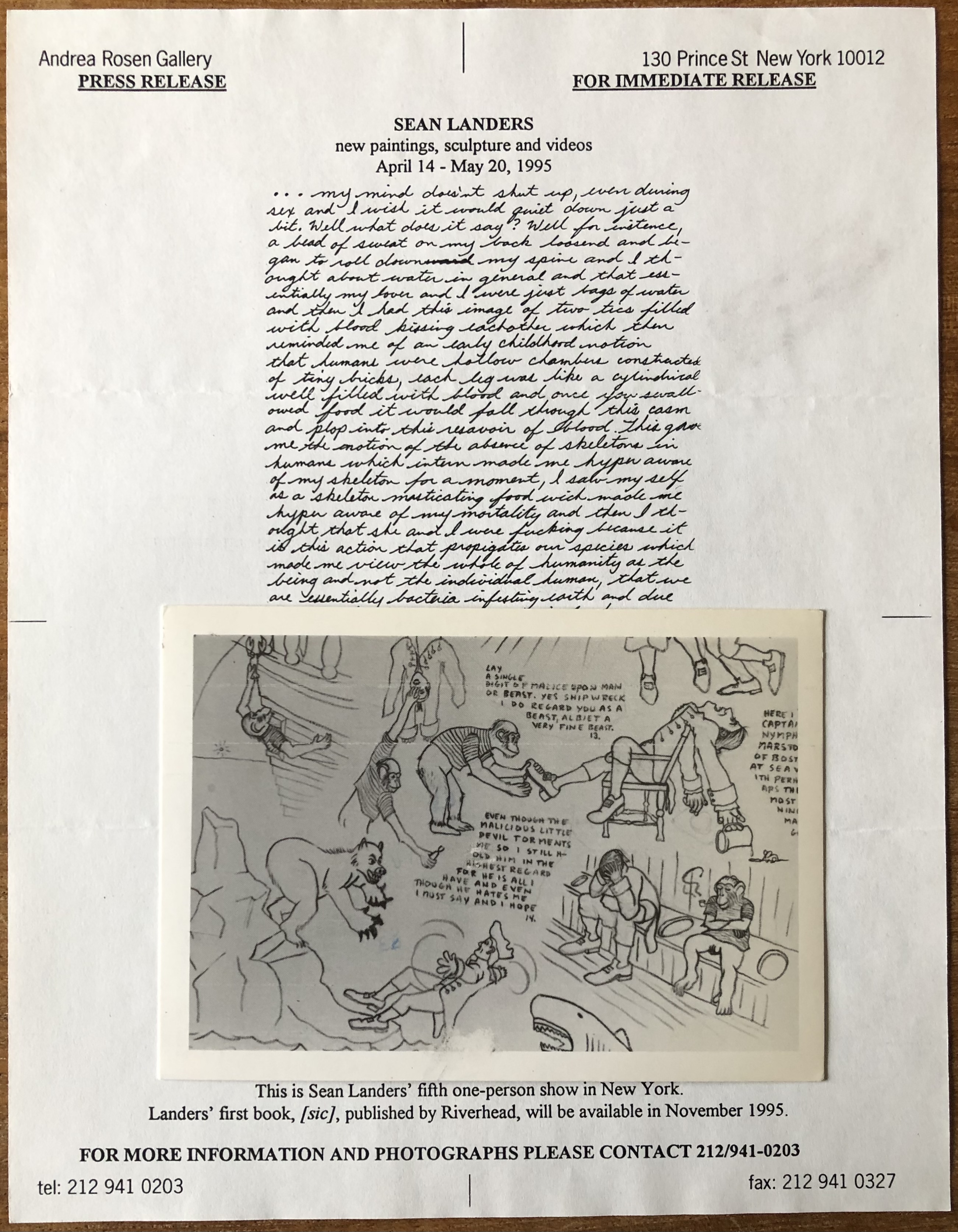(Sean Landers). Sean Landers. Andrea Rosen Gallery, New York, April 13 – May 20, 1995