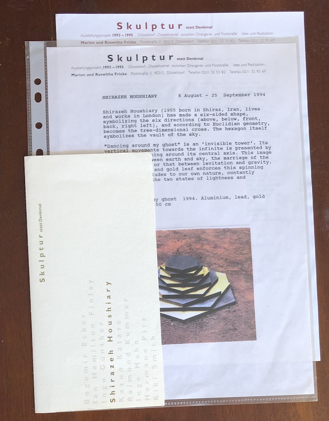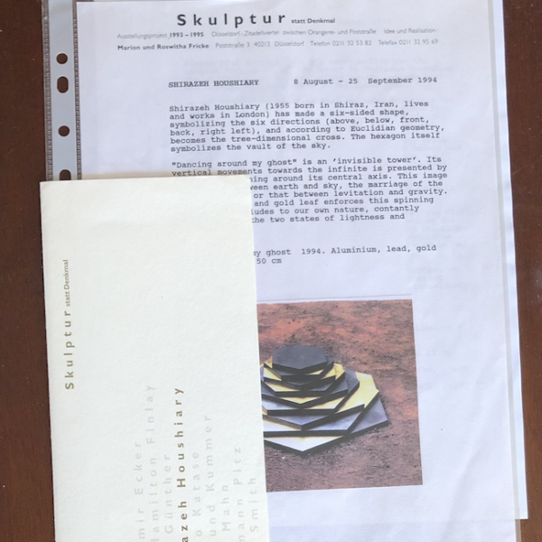 •(Shirazeh Houshiary). Shirazeh Houshiary. Marion und Roswita Fricke, Düsseldorf, 8. August – 25. September 1994. 2 pages (=1 sheet). 2 illustrations (1 color).