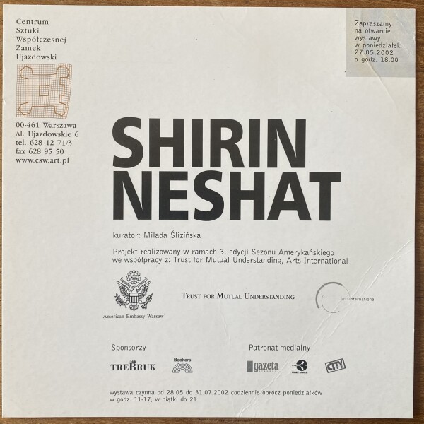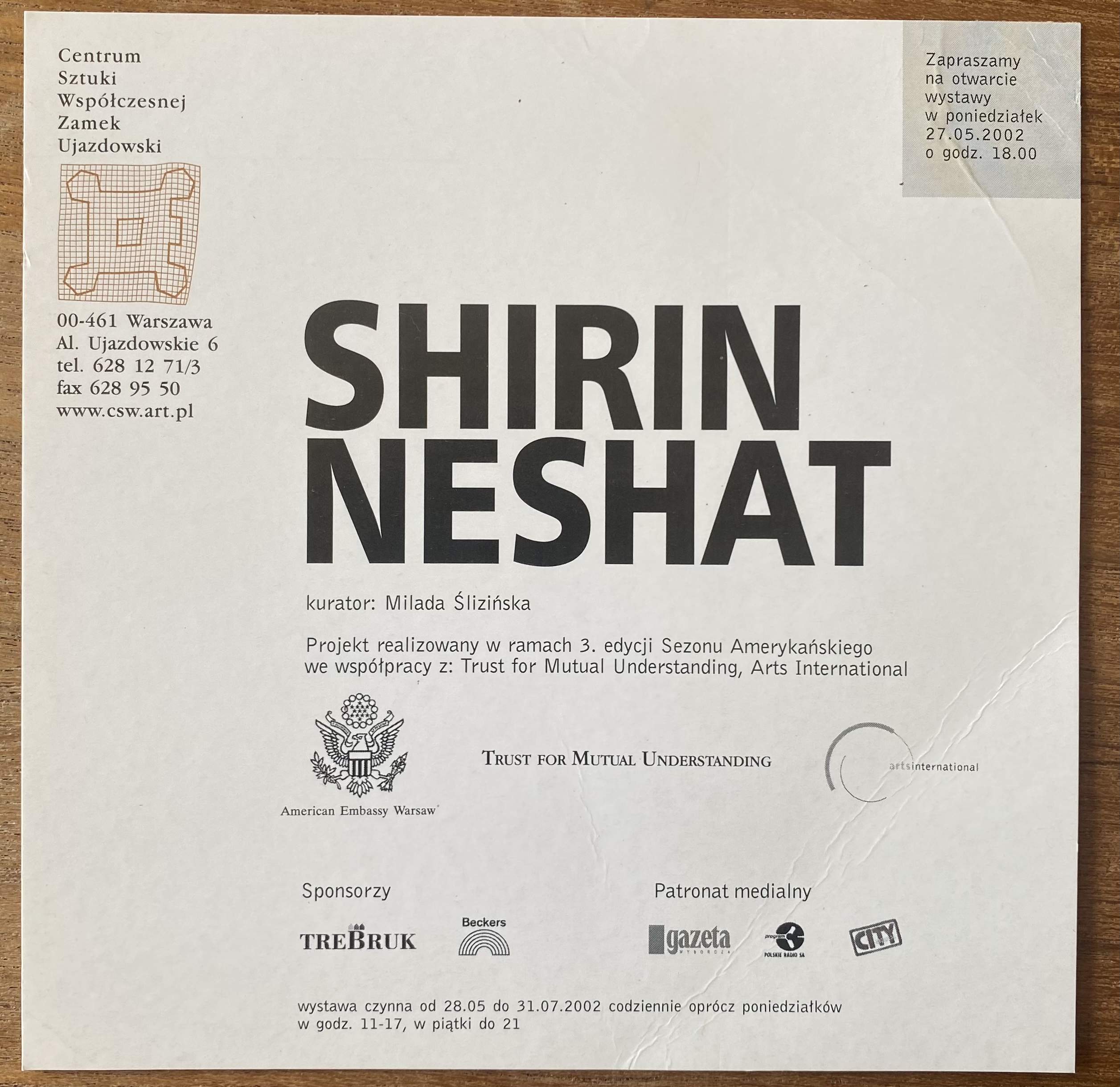 (Shirin Neshat). Shirin Neshat. Centrum Sztuki Wspolczesnej Zamek Ujazdowski, Warszawa, 27, 28. 05–31. 07. 2002