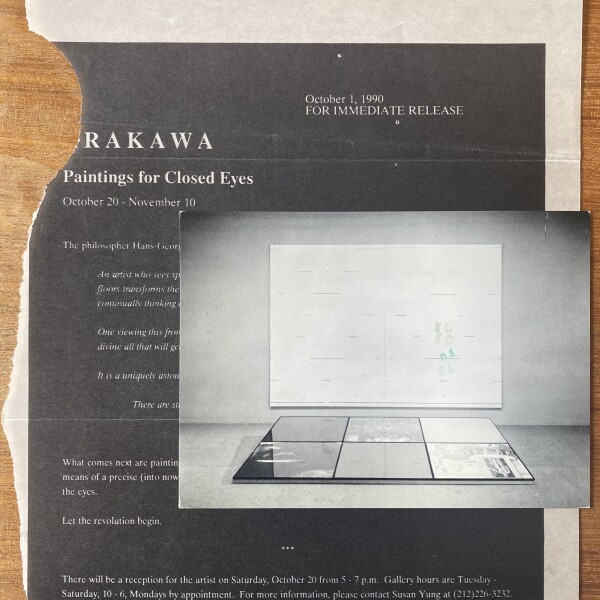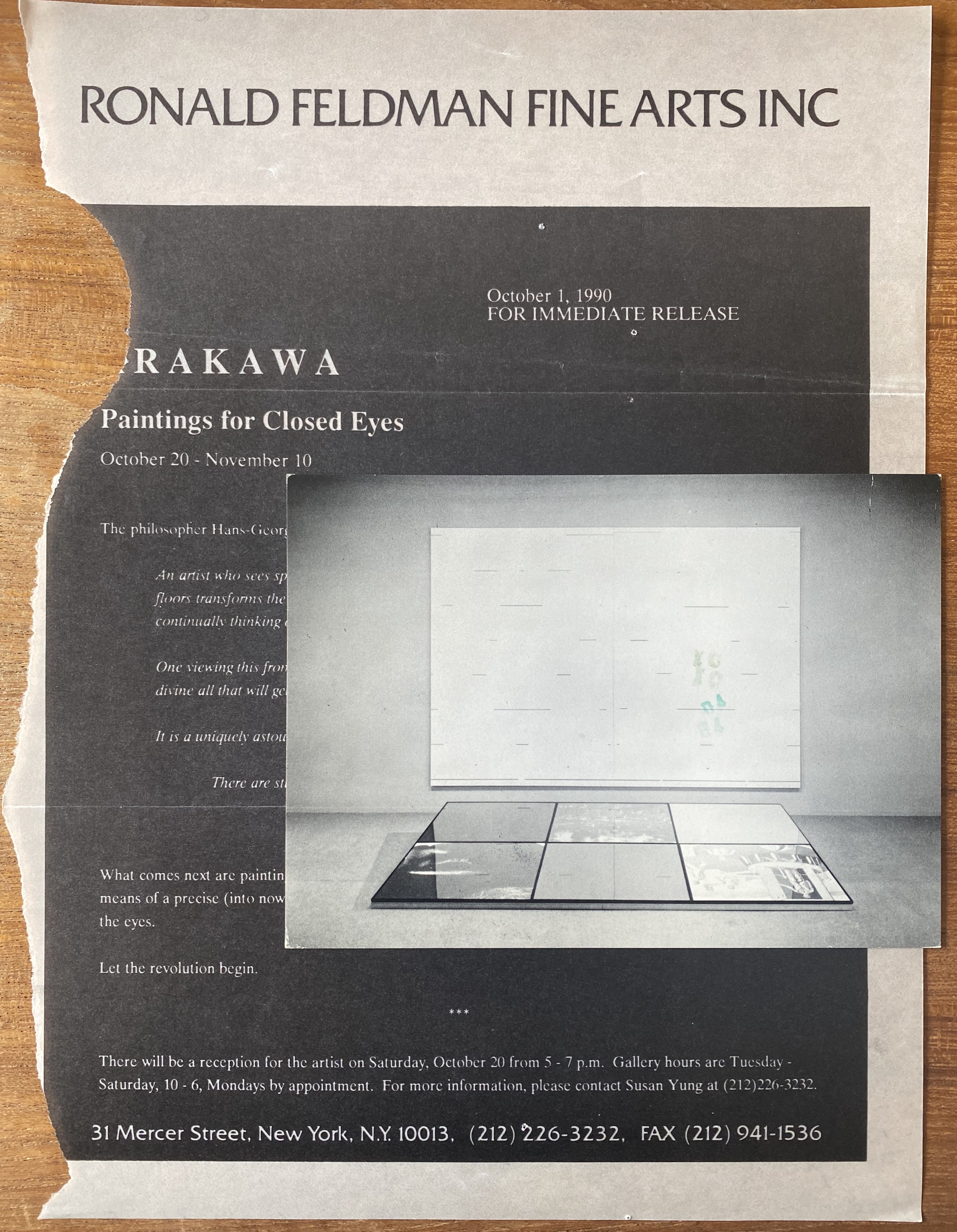 (Shusaku Arakawa). Arakawa. Paintings For closed eyes. Ronald Feldman Fine Arts, New York, October 20 – November 10, 1990