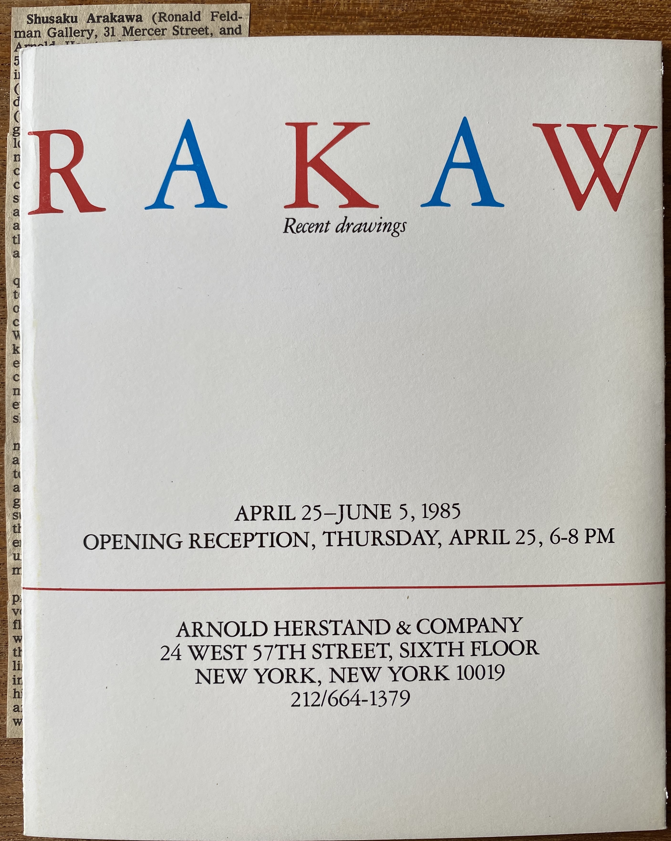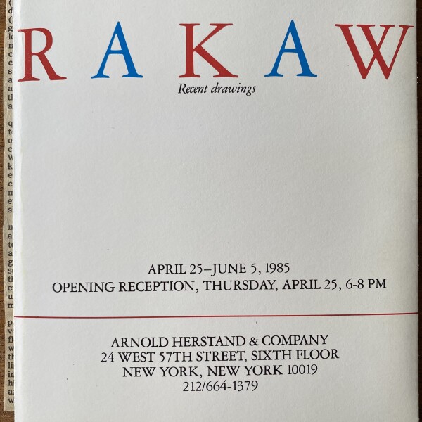 (Shusaku Arakawa). Arakawa. Recent Drawings. Arnold Herstand & Company, New York, April 25 – June 5, 1985